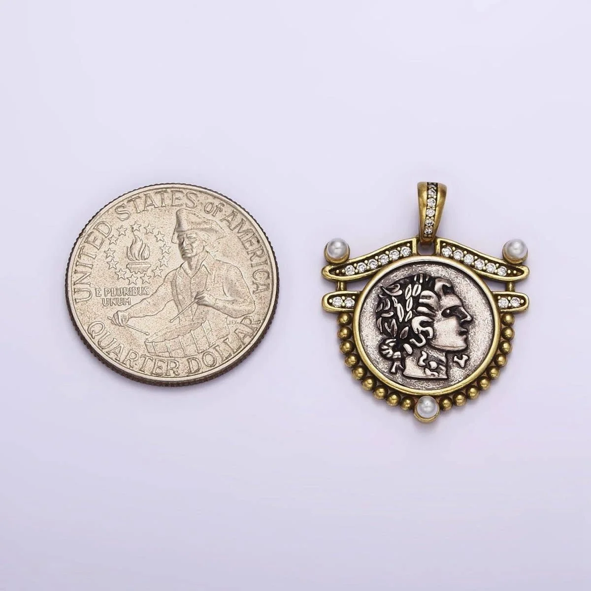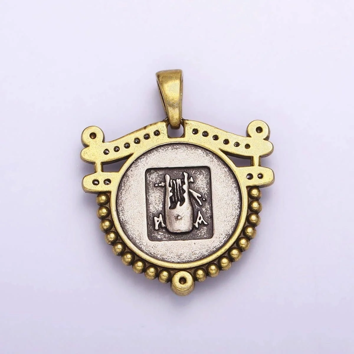 All Items › Greek Medallion Image 1 of 4 Image 2 of 4 Image 3 of 4 Image 4 of 4 Greek Medallion $82.00 sold out Size: 28.3mm x 23.5mm x 3.1mm; Bail: 7.6 x 5.2 mm Get notified by email when this product is in stock. Sold Out Added! Size: 28.3mm x 23.5mm x 3.1mm; Bail: 7.6 x 5.2 mm
