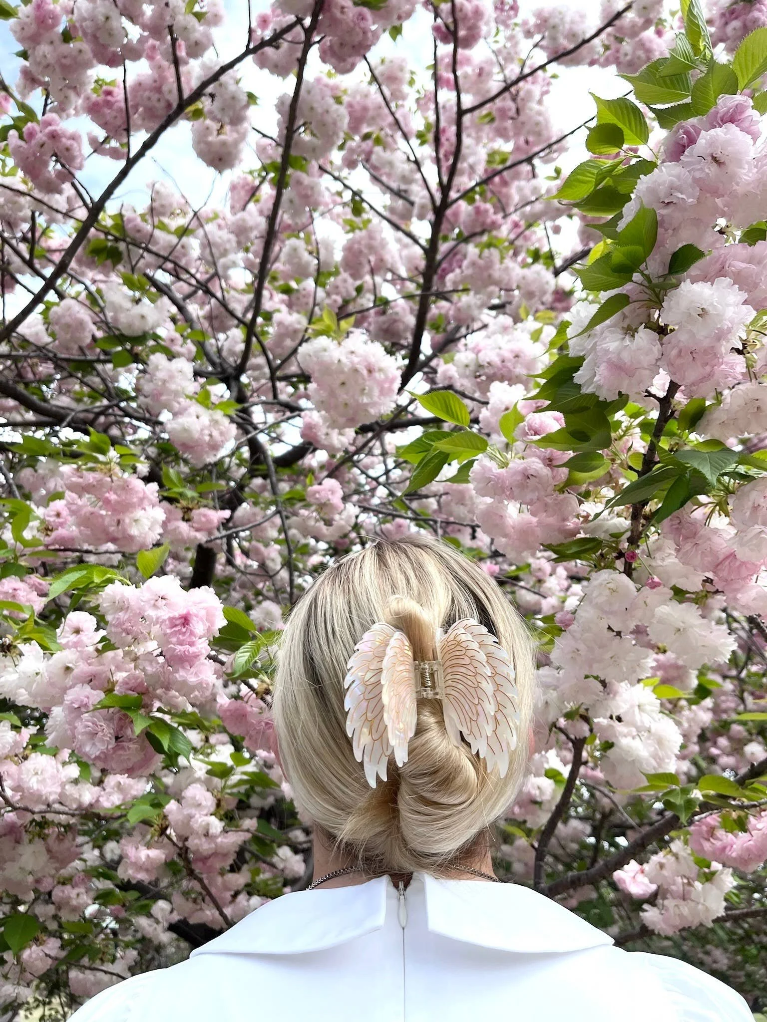 All Items › Hand-painted Angel Wings Claw Hair Clip: Pearl Image 1 of 4 Image 2 of 4 Image 3 of 4 Image 4 of 4 Hand-painted Angel Wings Claw Hair Clip: Pearl $30.00 Limited Availability Our Angel Wings claw is hand painted by our Solar Eclipse artists.Carefully crafted from cellulose acetate - an eco-friendly, biodegradable material made from recycled wood pulp.The claw is double sided, for a perfect look from all angles!Original design you won't find anywhere else!Style notes- original design- hand-painted clip- double-sided design- large claw clip for thick hair- eco-friendly cellulose acetate Get notified by email when this product is in stock. Add To Cart Added! Our Angel Wings claw is hand painted by our Solar Eclipse artists.Carefully crafted from cellulose acetate - an eco-friendly, biodegradable material made from recycled wood pulp.The claw is double sided, for a perfect look from all angles!Original design you won't find anywhere else!Style notes- original design- hand-painted clip- double-sided design- large claw clip for thick hair- eco-friendly cellulose acetate