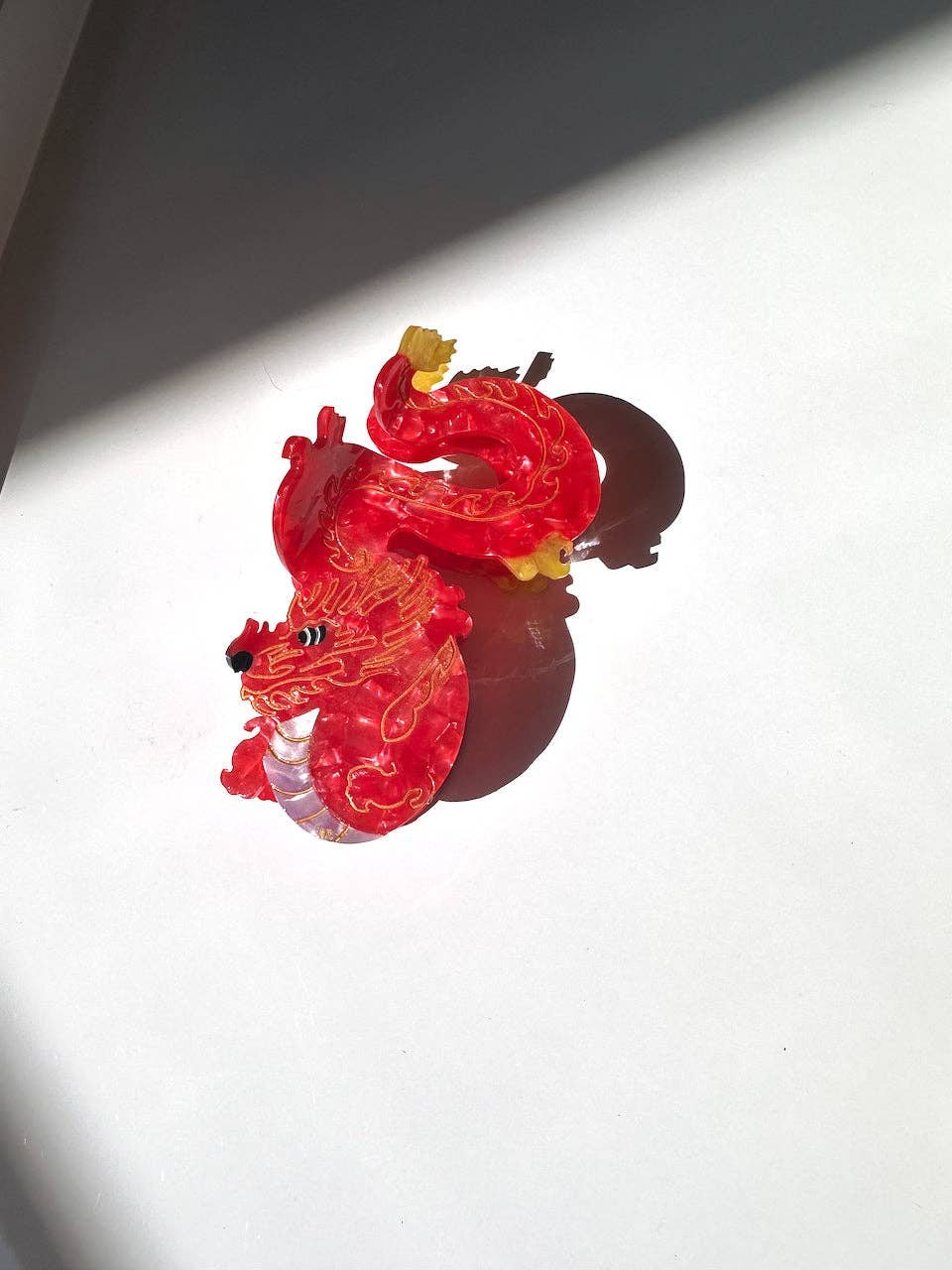 All Items › Hand-painted Dragon Claw Hair Clip Image 1 of 3 Image 2 of 3 Image 3 of 3 Hand-painted Dragon Claw Hair Clip $28.00 sold out Our Lunar New Year Dragon claw is hand painted by our Solar Eclipse artists. Carefully crafted from cellulose acetate - an eco-friendly, biodegradable material made from recycled wood pulp.The claw is double sided, for a perfect look from all angles!Original design you won't find anywhere else!Style notes- original design- hand-painted clip- double-sided design- large claw clip for thick hair- eco-friendly cellulose acetate- includes premium retail packaging- 100% recyclable & plastic-free packaging- imported Get notified by email when this product is in stock. Sold Out Added! Our Lunar New Year Dragon claw is hand painted by our Solar Eclipse artists. Carefully crafted from cellulose acetate - an eco-friendly, biodegradable material made from recycled wood pulp.The claw is double sided, for a perfect look from all angles!Original design you won't find anywhere else!Style notes- original design- hand-painted clip- double-sided design- large claw clip for thick hair- eco-friendly cellulose acetate- includes premium retail packaging- 100% recyclable & plastic-free packaging- imported