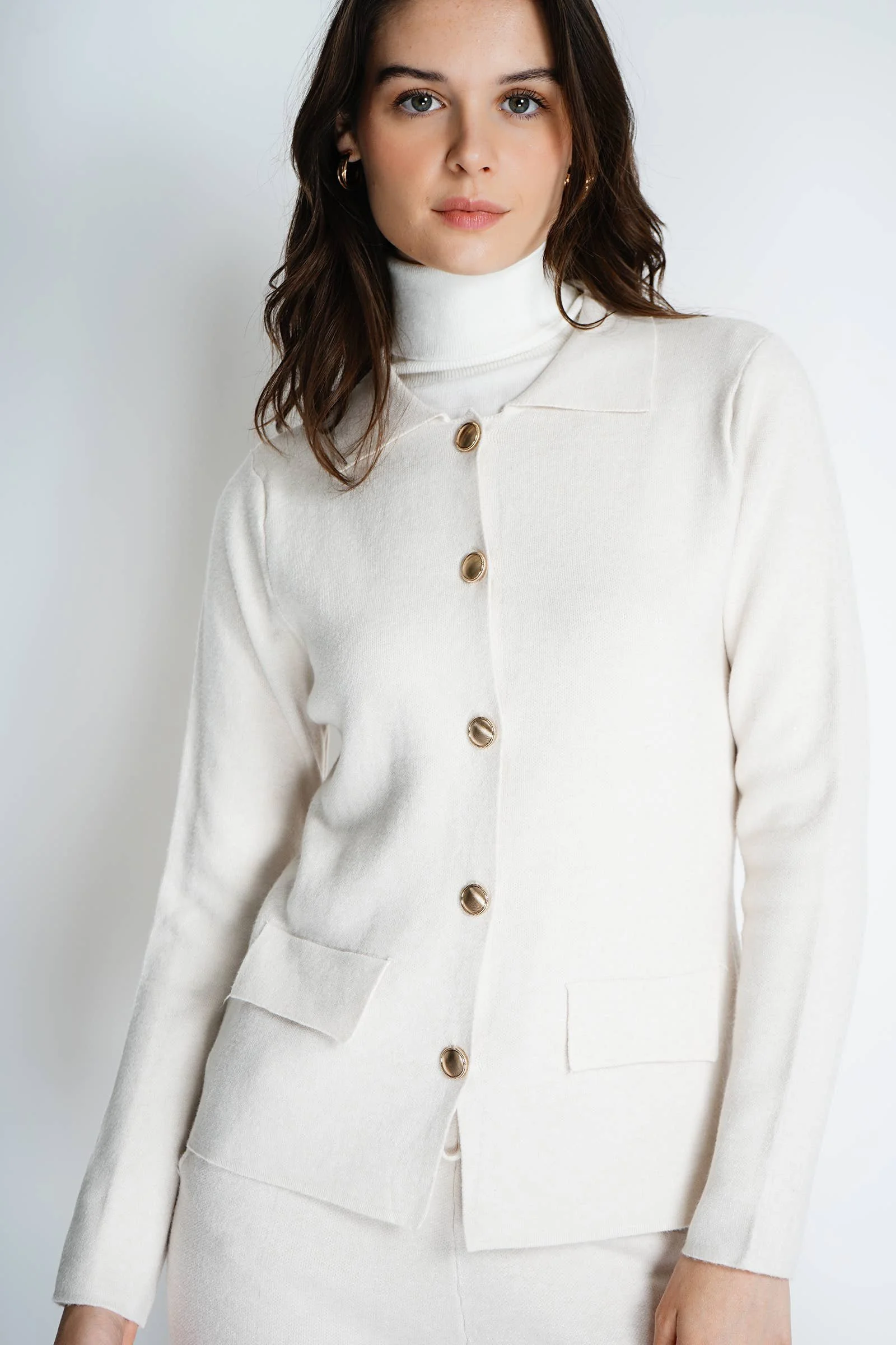 All Items › Knitted jacket: Beige Image 1 of 5 Image 2 of 5 Image 3 of 5 Image 4 of 5 Image 5 of 5 Knitted jacket: Beige $67.00 Limited Availability Knitted jacket with front buttons and long sleeves Get notified by email when this product is in stock. Quantity: Add To Cart Added! Knitted jacket with front buttons and long sleeves