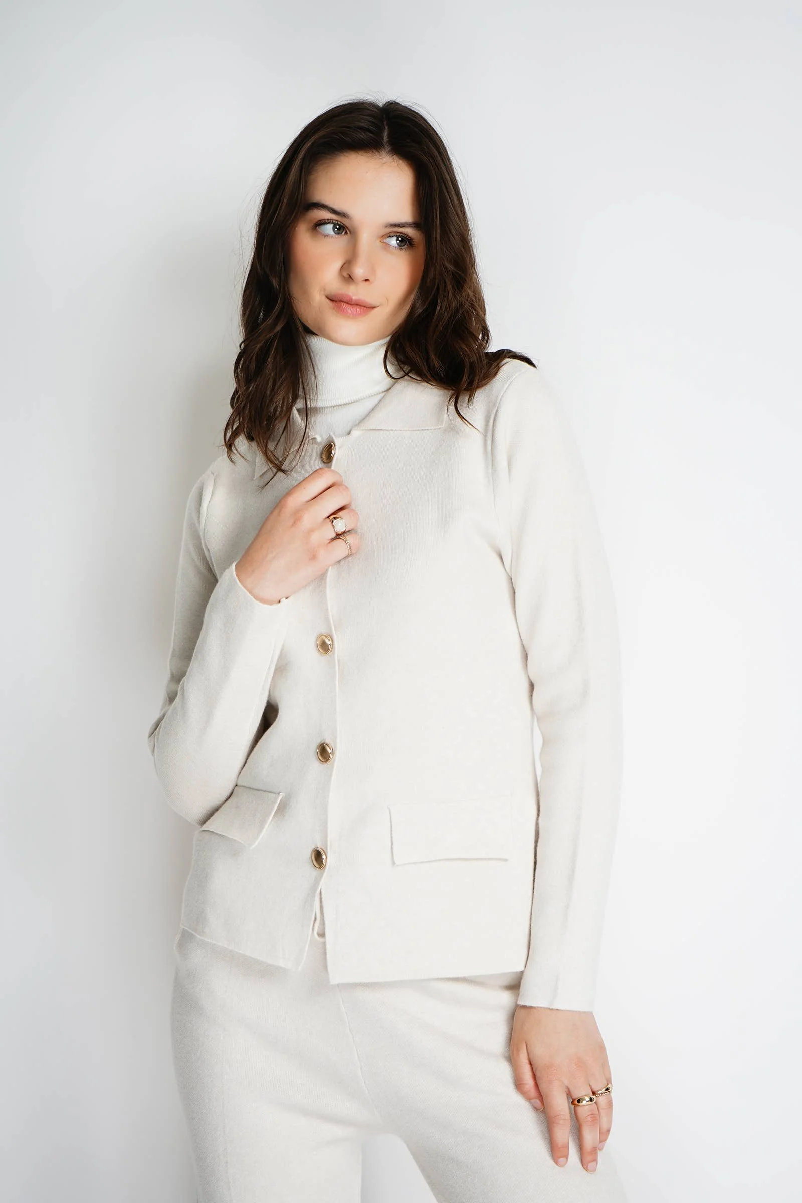All Items › Knitted jacket: Taupe Image 1 of 5 Image 2 of 5 Image 3 of 5 Image 4 of 5 Image 5 of 5 Knitted jacket: Taupe $67.00 Knitted jacket with front buttons and long sleeves Get notified by email when this product is in stock. Quantity: Add To Cart Added! Knitted jacket with front buttons and long sleeves