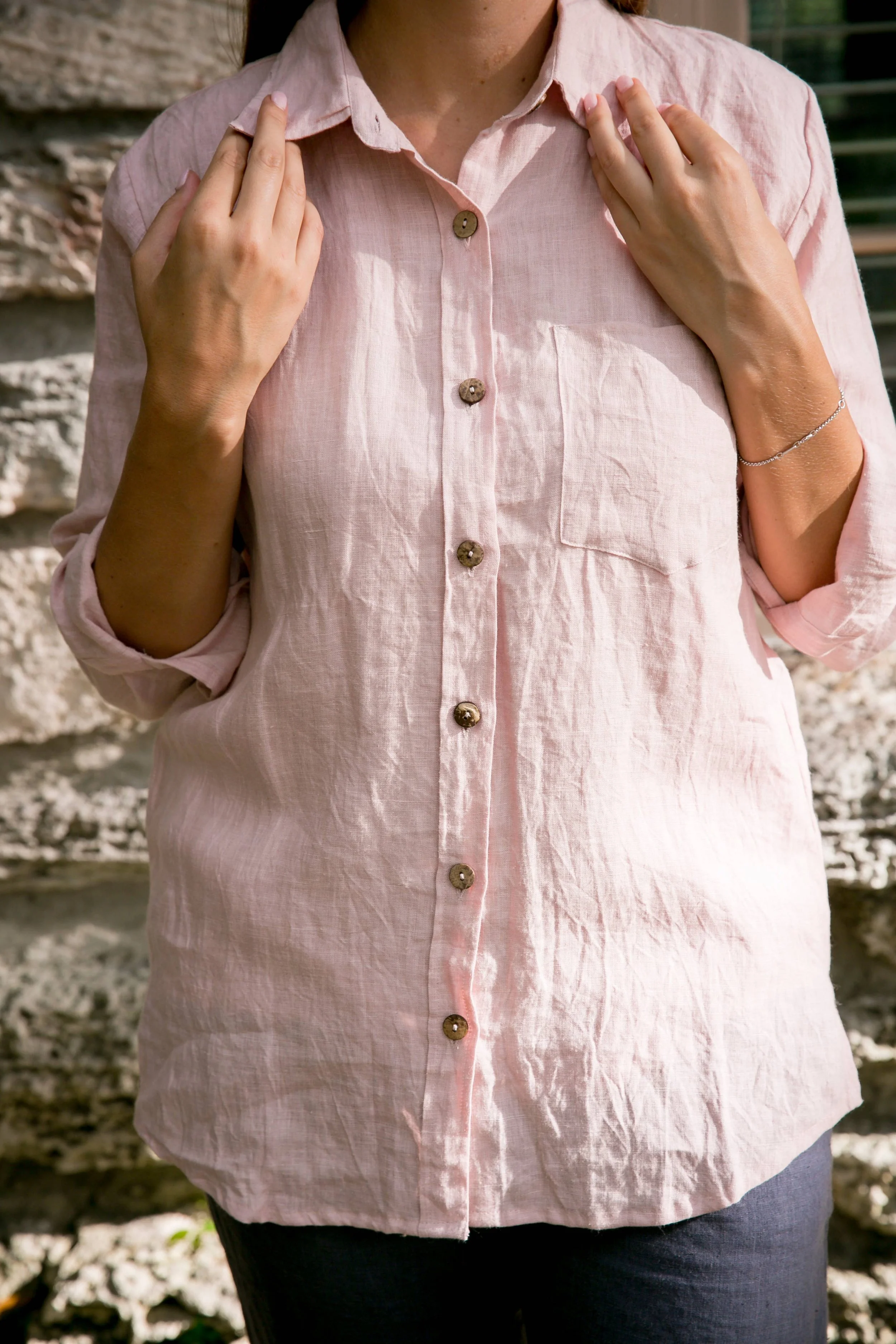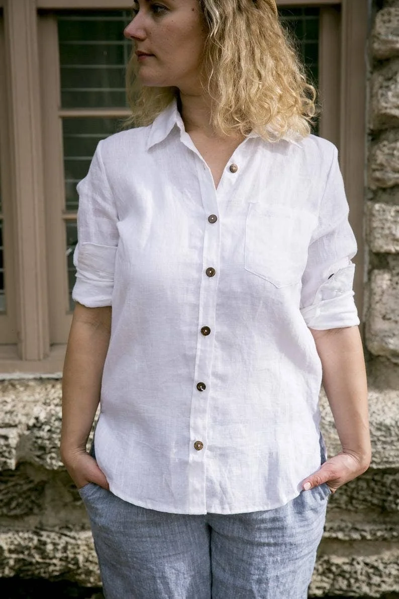 Introducing the Linen Boyfriend Shirt from VIKOLINO, your new go-to for effortless style and comfort. This button-down shirt is the perfect blend of casual and chic, ideal for any occasion. Crafted from high-quality, OEKO tex certified European linen, it offers an incredibly soft feel and a relaxed fit. The stonewashed finish lends a modern touch to this timeless piece. VIKOLINO is the creation of Victoriya Kuzmenkov, a lover of all things linen. With this shirt, you're not only embracing a stylish piece of clothing, but also Victoriya's passion for environmentally friendly textiles and a healthier lifestyle. So go ahead, add this versatile piece to your wardrobe and enjoy the comfort and elegance of linen!