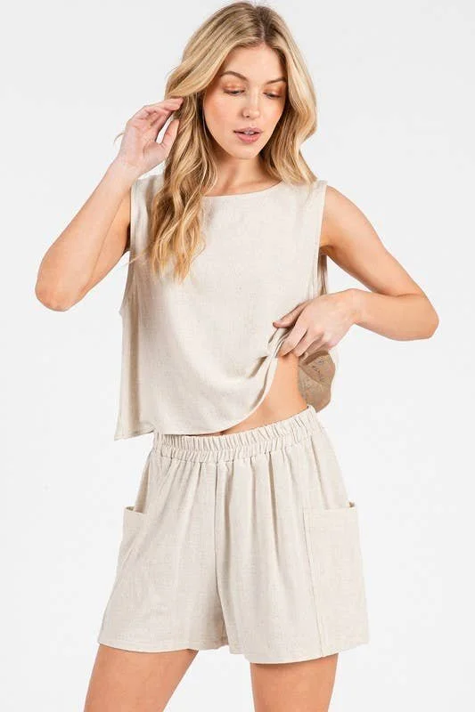 All Items › Linen Sleeveless Top Black,S Image 1 of 5 Image 2 of 5 Image 3 of 5 Image 4 of 5 Image 5 of 5 Linen Sleeveless Top Black,S $39.00 sold out LINEN ROUND NECK BACK SURPLICE DETAILED SLEEVELESS TOP. MATCHING BOTTOM: NP70330A 75% RAYON 25% LINEN Get notified by email when this product is in stock. Sold Out Added! LINEN ROUND NECK BACK SURPLICE DETAILED SLEEVELESS TOP. MATCHING BOTTOM: NP70330A 75% RAYON 25% LINEN