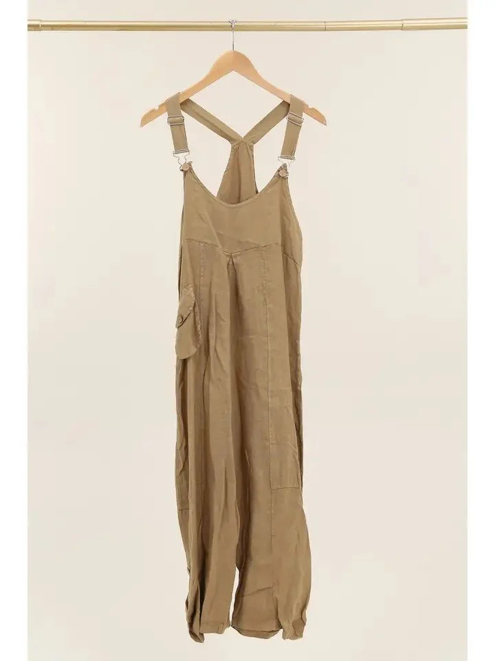 Linen Spring Summer Jumpsuit Camel