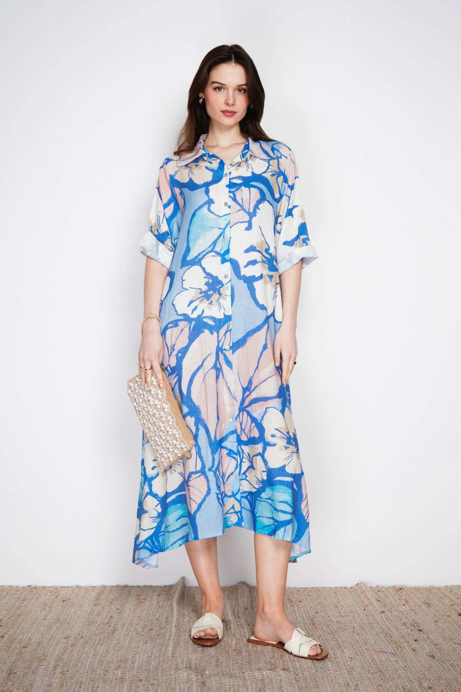 All Items › Long printed linen dress: Navy Image 1 of 5 Image 2 of 5 Image 3 of 5 Image 4 of 5 Image 5 of 5 Long printed linen dress: Navy $108.00 sold out - Short sleeves- Front buttoningOne size fits from 36 to 44. Get notified by email when this product is in stock. Sold Out Added! - Short sleeves- Front buttoningOne size fits from 36 to 44.