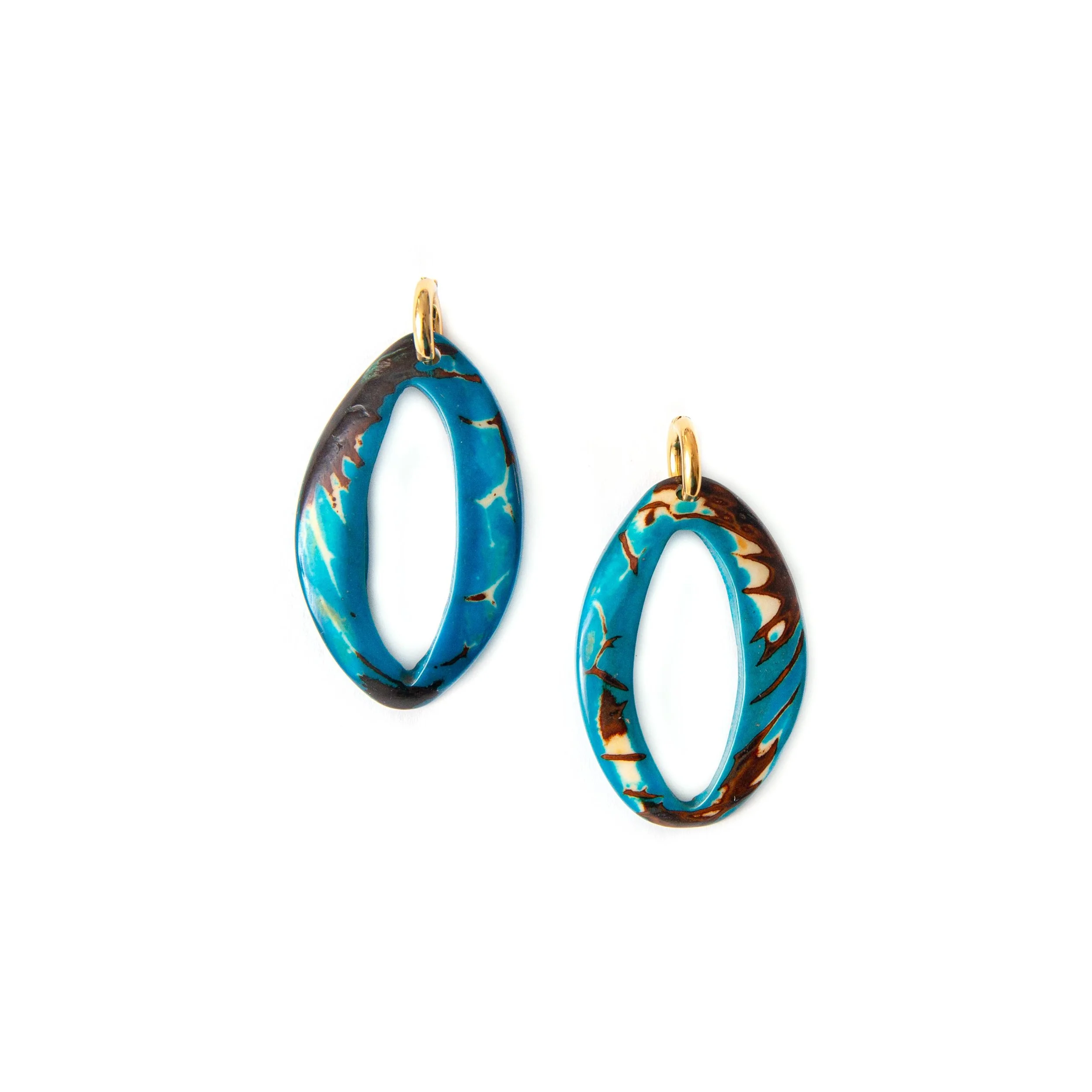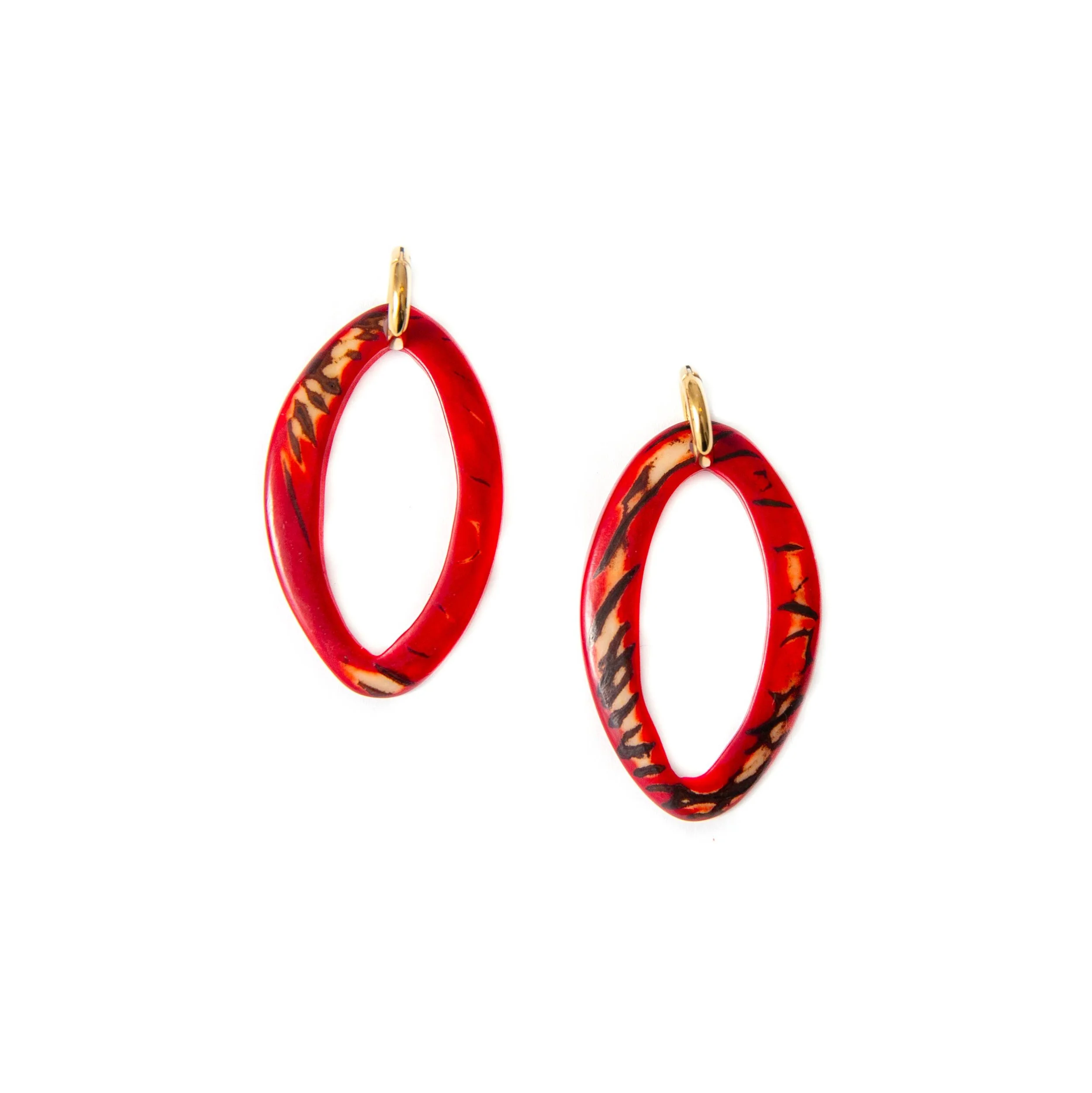 Sustainability meets fashion with these one-of-a-kind oval shaped earrings. Handmade with eco-friendly tagua with natural leftover grain for a unique look. Approximately 2.5" L Materials: Sustainable Tagua nut Ear wires are hypoallergenic, nickel free, and lead free Organic Vegetable Dyes Handmade in Ecuador Due to the nature and size of the tagua nuts, all sizes are approximate…not exact. Colors may vary from the pictures slightly due to the nature of the Tagua Nut.