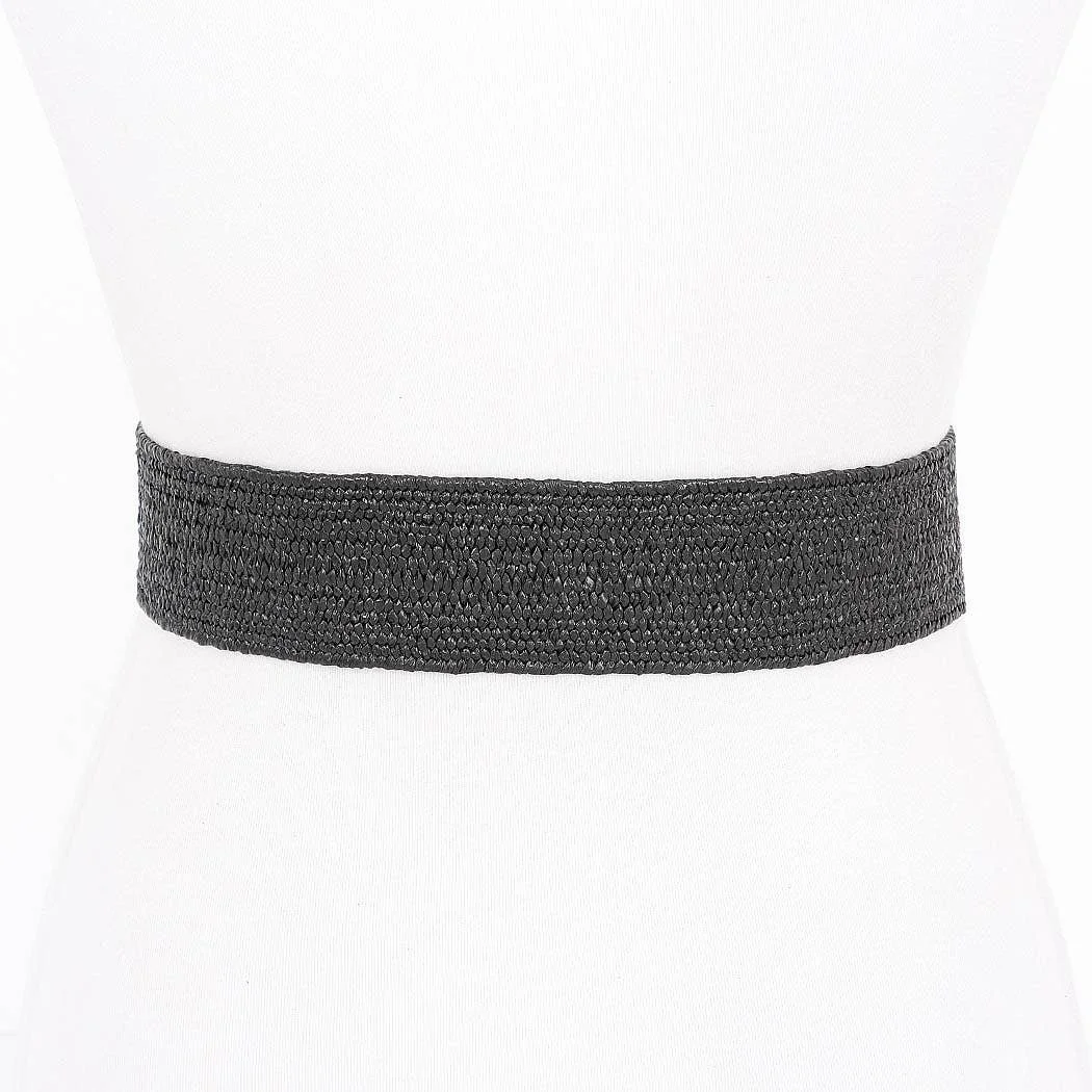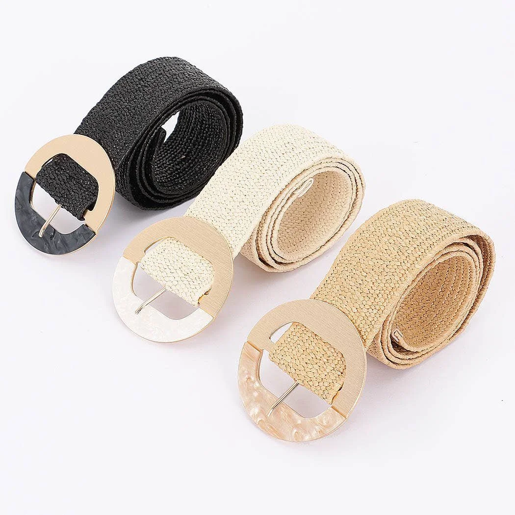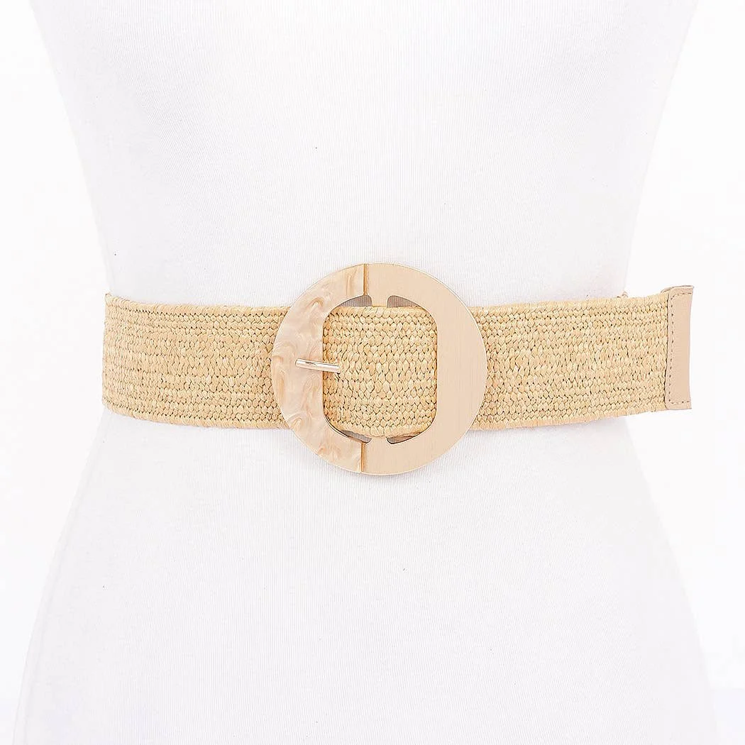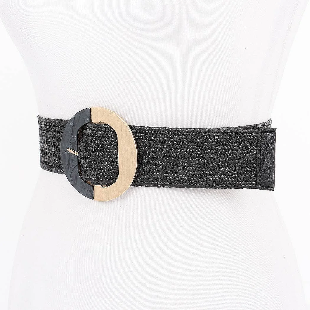 * Faux Straw Marble Metal Buckle Stretch Belt