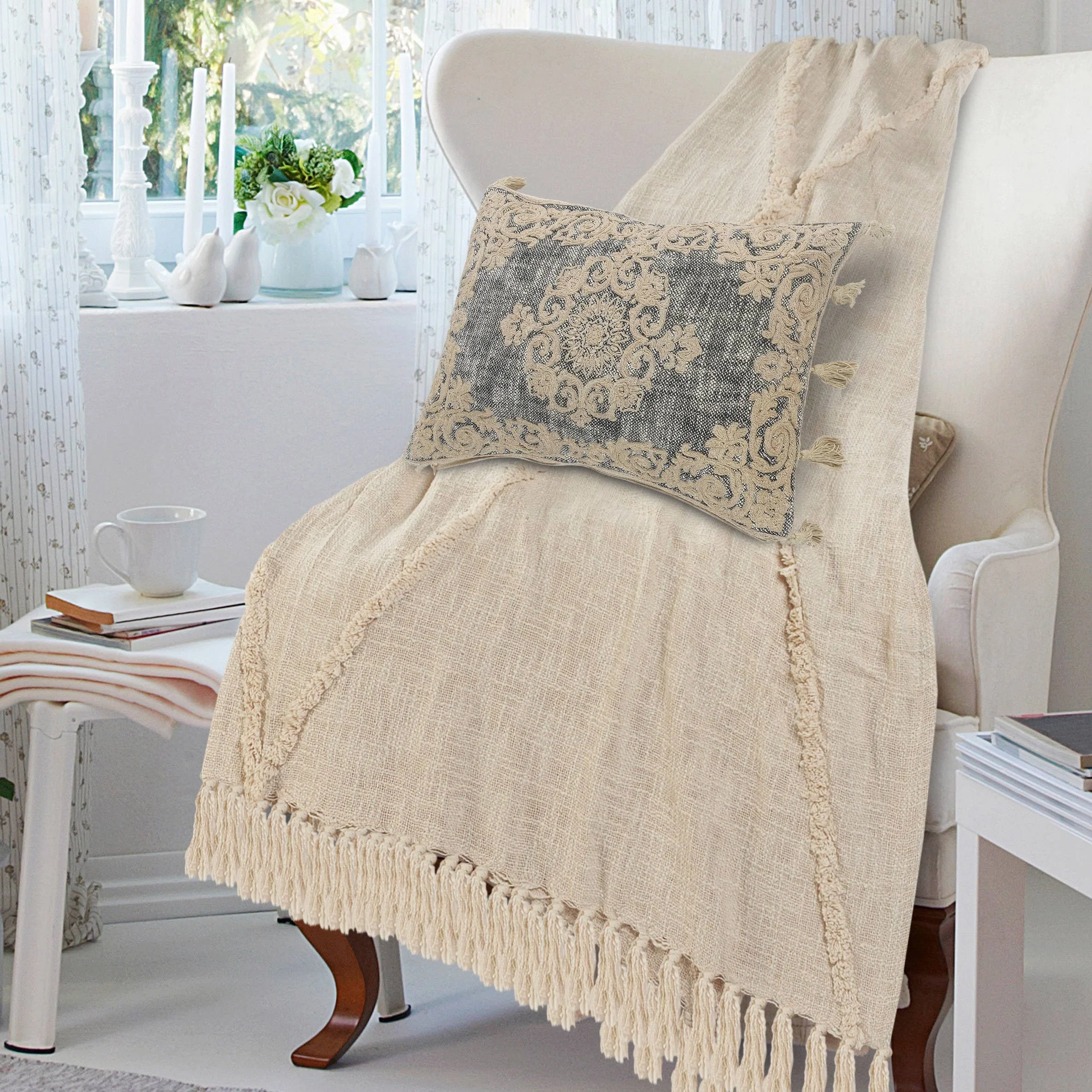 Designed to thrill, our pillow collection will add intricate mastery and eye pleasing designs to any room. This pillow addition dwells perfectly on a comfy couch, bed, or decorative bench. This pillow features an intricate medallion and bordered design in a delightful cream gray coloring. It makes a great addition to a variety of spaces no matter your collection's theme. Handcrafted with the customer in mind, there is no compromise of comfort and style with the pillow line we create. 100% Cotton . Handmade Closure: Zipper. Depth: 7.5