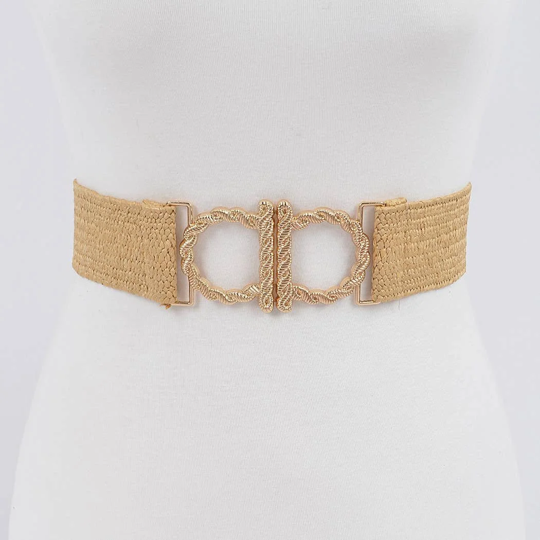 Metal Faux Straw Elastic Belt: Beige