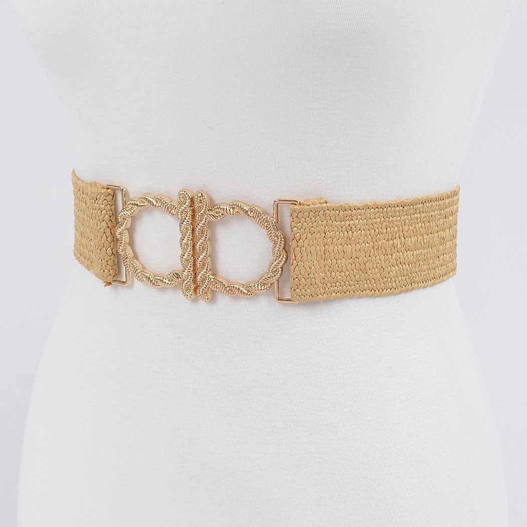 Metal Faux Straw Elastic Belt: Khaki