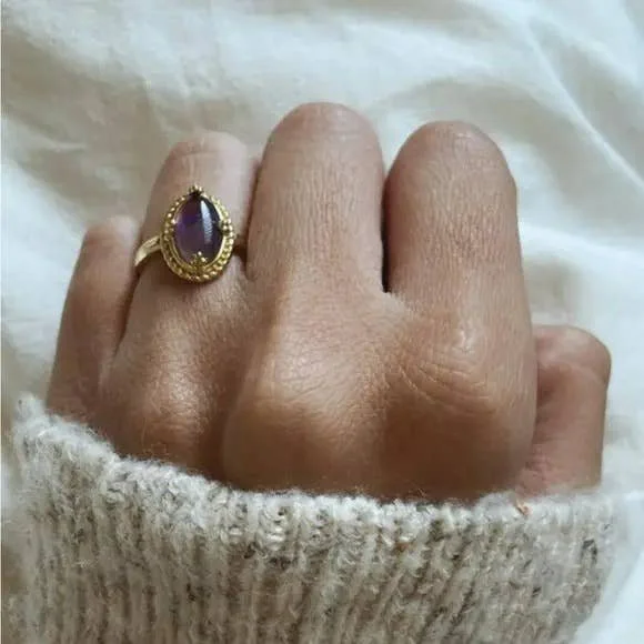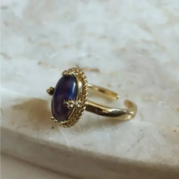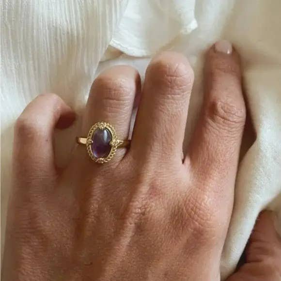 All Items › Muna Ring Image 1 of 4 Image 2 of 4 Image 3 of 4 Image 4 of 4 Muna Ring $42.00 sold out Beautiful 14K Gold Filled Ring featuring purple oval stone in centerSize is adjustable 🫶🏻Tramps+Thieves DesignMade in Los Angeles Get notified by email when this product is in stock. Sold Out Added! Beautiful 14K Gold Filled Ring featuring purple oval stone in centerSize is adjustable 🫶🏻Tramps+Thieves DesignMade in Los Angeles