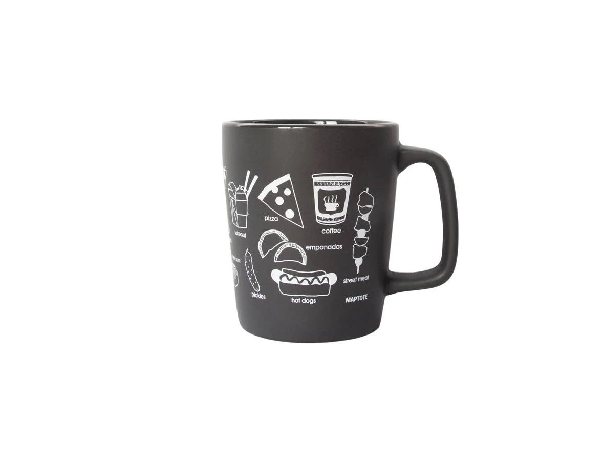 Show off your hometown pride while sipping a hot beverage out of your stylish matte gray mug, featuring local favorite food from New York, New York. The perfect gift for foodies. • 11oz matte ceramic. • Approximately 3.5″ x 4". • Mug made in China. Designed and Printed in the USA.