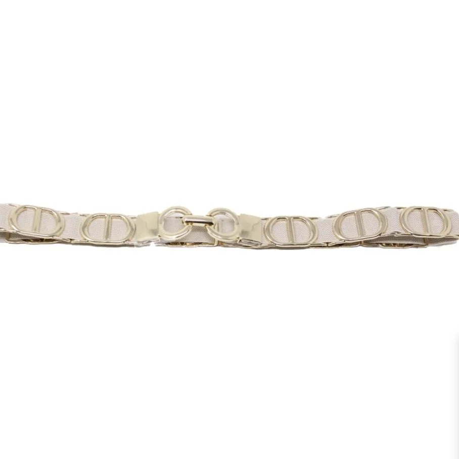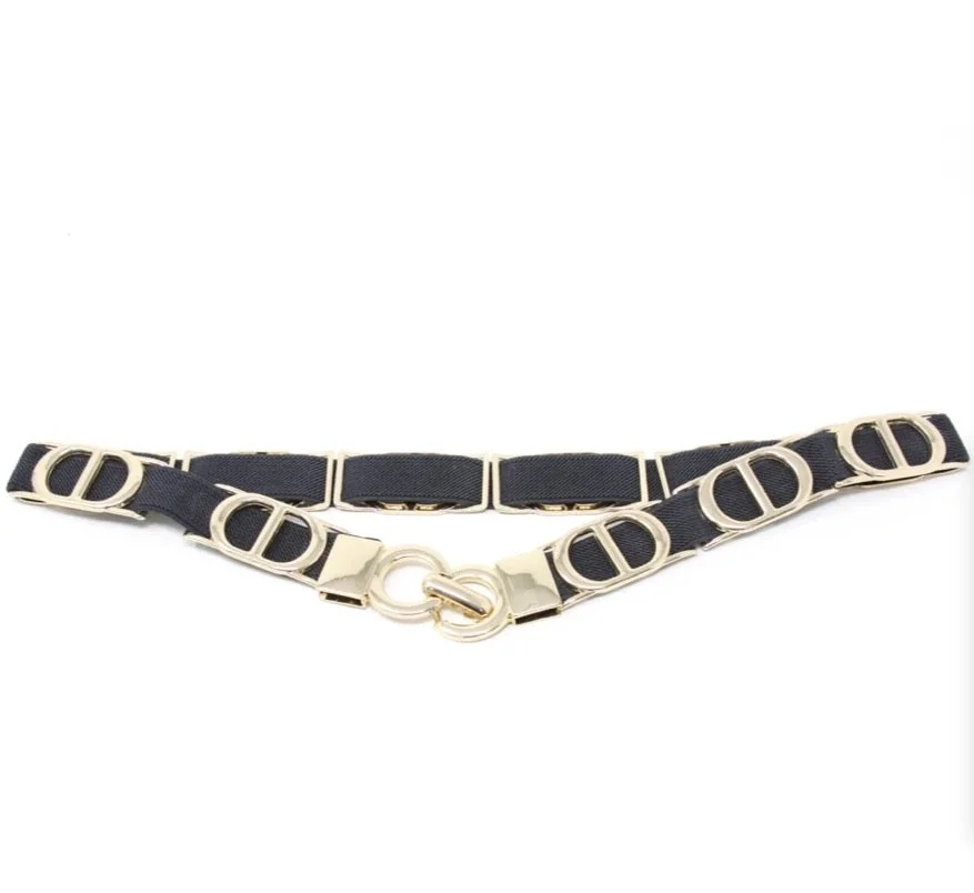 This accessory is designed to fit a variety of sizes, boasting a flexible and stretchy construction that ensures comfort and adaptability. The eye-catching metallic inserts add a touch of elegance and sophistication.