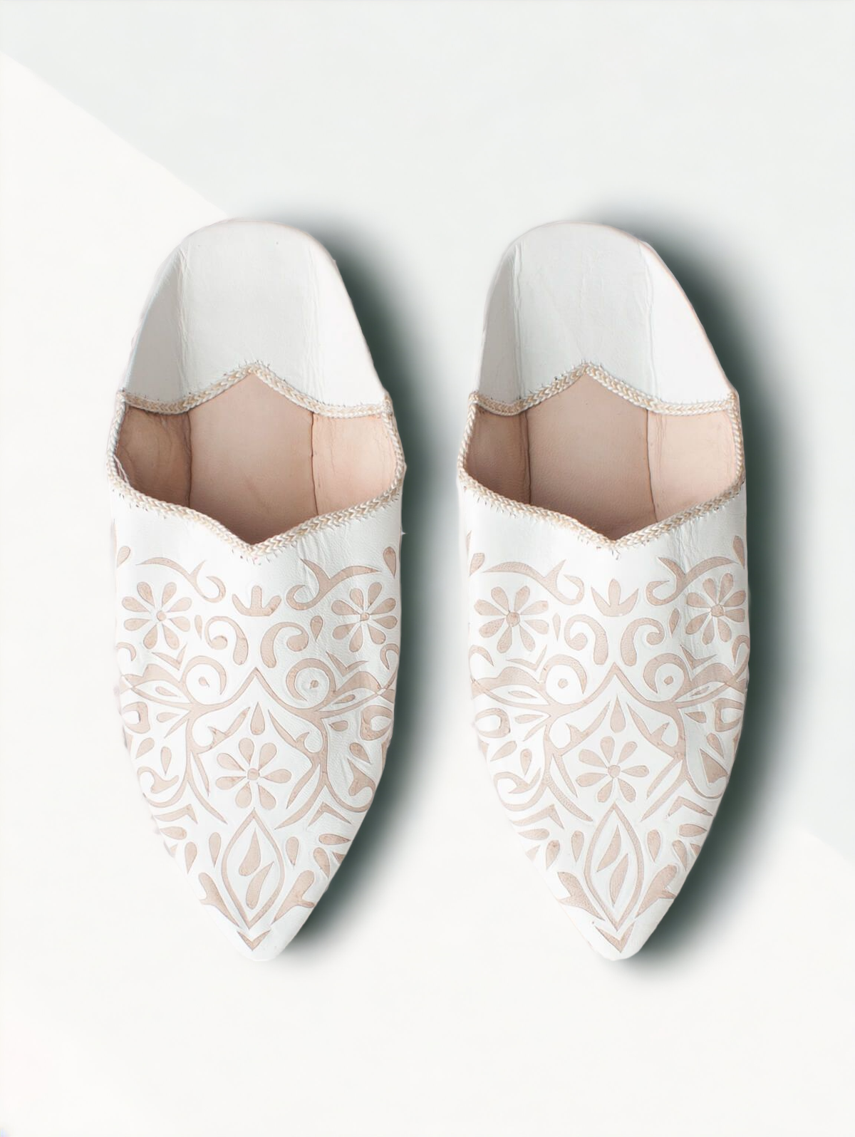 In Morocco slippers are called 'babouches', which are made of 100% moroccan leather at the bottom. We've used suede to give it that winter look.
