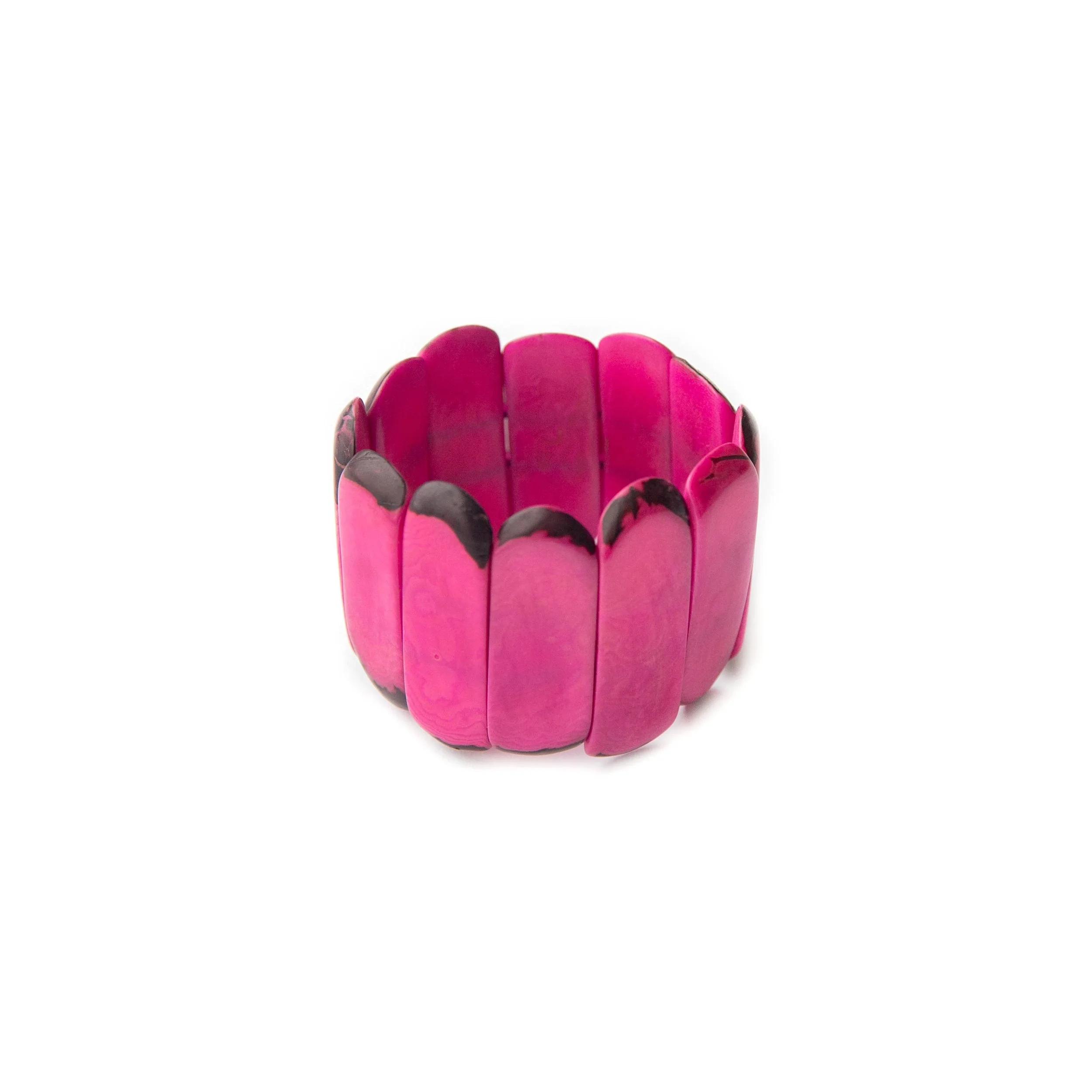 Our new Pisa bracelet incorporates sustainable Tagua nut to form a naturally gorgeous bracelet • Stretchable fits 7"-7.5" wrists • Lightweight •Made with sustainable Tagua nut • Vegetable dyes • Handcrafted in Ecuador • Due to the nature and size of the tagua nuts, all sizes are approximate…not exact.