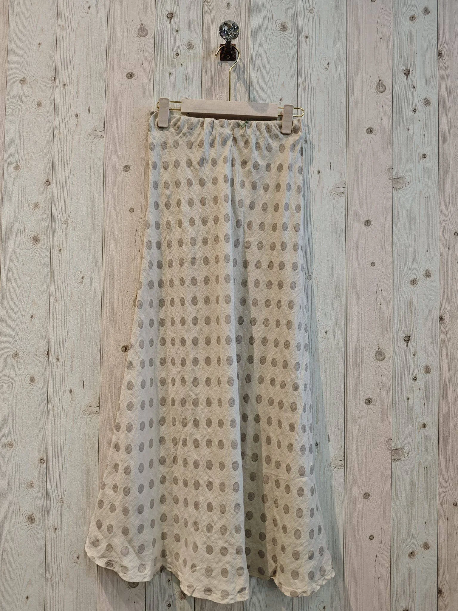 All Items › POLKA DOT SKIRT 100% LINEN: BEIGE Image 1 of 5 Image 2 of 5 Image 3 of 5 Image 4 of 5 Image 5 of 5 POLKA DOT SKIRT 100% LINEN: BEIGE $86.00 sold out *POLKA DOT SKIRT *100% LINEN COMPOSITION *MEASUREMENTS LENGTH 95 CM AND WIDTH 40 CM. APPROX Get notified by email when this product is in stock. Sold Out Added! *POLKA DOT SKIRT *100% LINEN COMPOSITION *MEASUREMENTS LENGTH 95 CM AND WIDTH 40 CM. APPROX