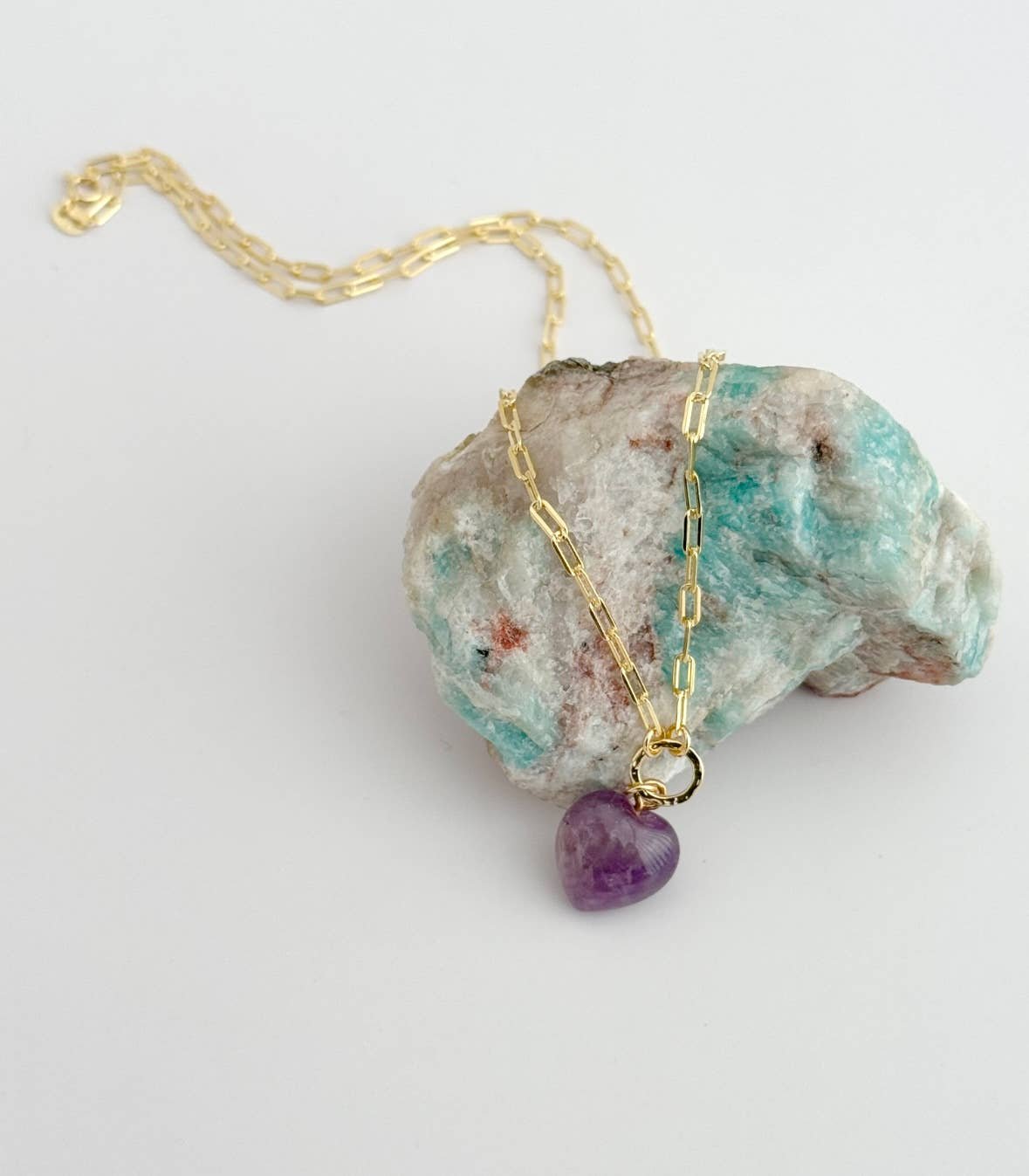 All Items › Real Love Baby Necklace: Rose Quartz Image 1 of 4 Image 2 of 4 Image 3 of 4 Image 4 of 4 Real Love Baby Necklace: Rose Quartz $69.00 sold out 14K Gold Filled staple chain necklace featuring small Rose Quartz heart stone pendentMeasures 18” longAvailable in Rose Quartz, Lapis Lazuli & Amethyst Tramps+Thieves DesignMade in Los Angeles Get notified by email when this product is in stock. Sold Out Added! 14K Gold Filled staple chain necklace featuring small Rose Quartz heart stone pendentMeasures 18” longAvailable in Rose Quartz, Lapis Lazuli & Amethyst Tramps+Thieves DesignMade in Los Angeles