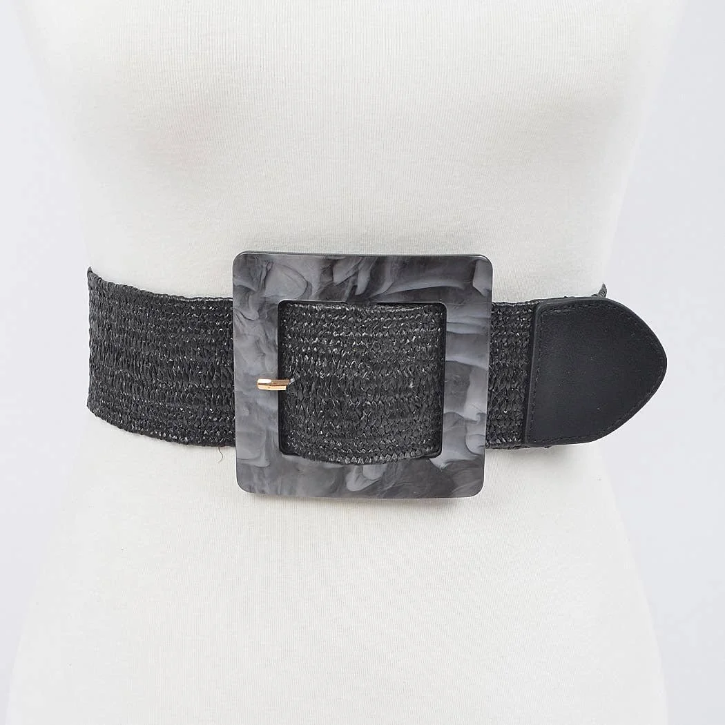 All Items › Resign Buckle Stretch Straw Belt: Black Image 1 of 5 Image 2 of 5 Image 3 of 5 Image 4 of 5 Image 5 of 5 Resign Buckle Stretch Straw Belt: Black $22.50 sold out * Resign buckle stretch straw belt * Approx. Width:2.25" Length:39.25" Get notified by email when this product is in stock. Sold Out Added! * Resign buckle stretch straw belt * Approx. Width:2.25" Length:39.25"