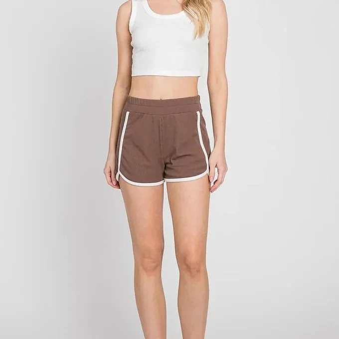 All Items › RIBBED BINDING DETAILED WAIST ELASTIC SHORTS BROWN Image 1 of 1 RIBBED BINDING DETAILED WAIST ELASTIC SHORTS BROWN $26.00 Limited Availability RIBBED BINDING DETAILED WAIST ELASTIC SHORTS BROWN RIBBED BINDING DETAILED WAIST ELASTIC SHORTS BROWN: Small Medium Large Get notified by email when this product is in stock. Add To Cart Added! RIBBED BINDING DETAILED WAIST ELASTIC SHORTS BROWN