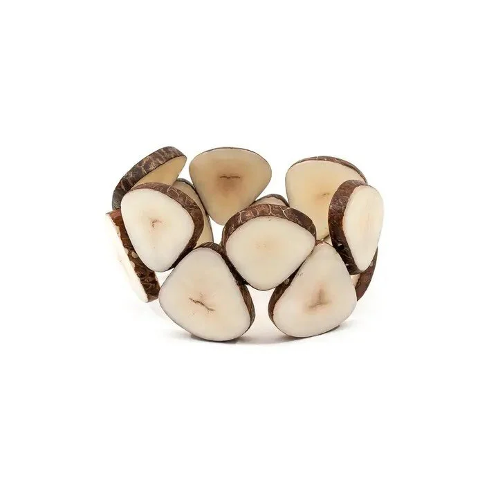 Stretchable fits 7"-7.5" wrists Lightweight Made with Tagua Chips Vegetable dyes Handmade in Ecuador Due to the nature and size of the tagua nuts, all sizes are approximate…not exact.