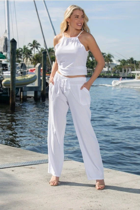 Cotton Natural long, drawstring, straight-leg pants with side and back pockets . This stylish look is made from the finest Peruvian Pima Cotton. Soft, comfortable and breathable. • Made in Peru