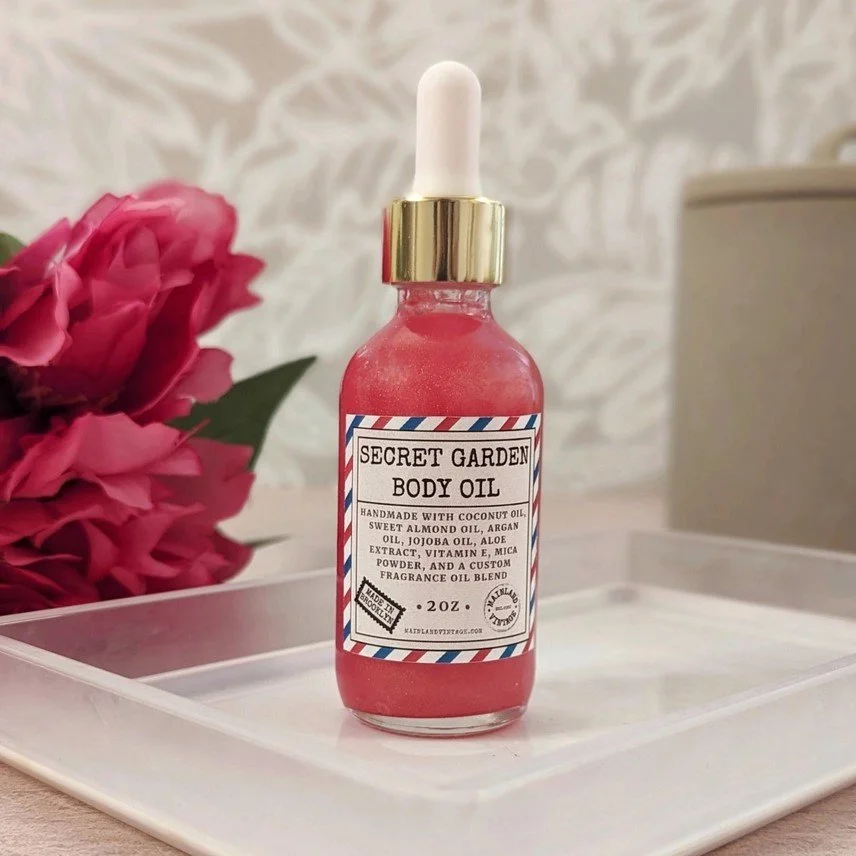 The floral fragrance of Secret Garden Body Oil envelops your skin, providing nourishment and moisture while offering the delightful essence of blooming flowers. Use it as a body oil for your skin or as a scalp treatment.