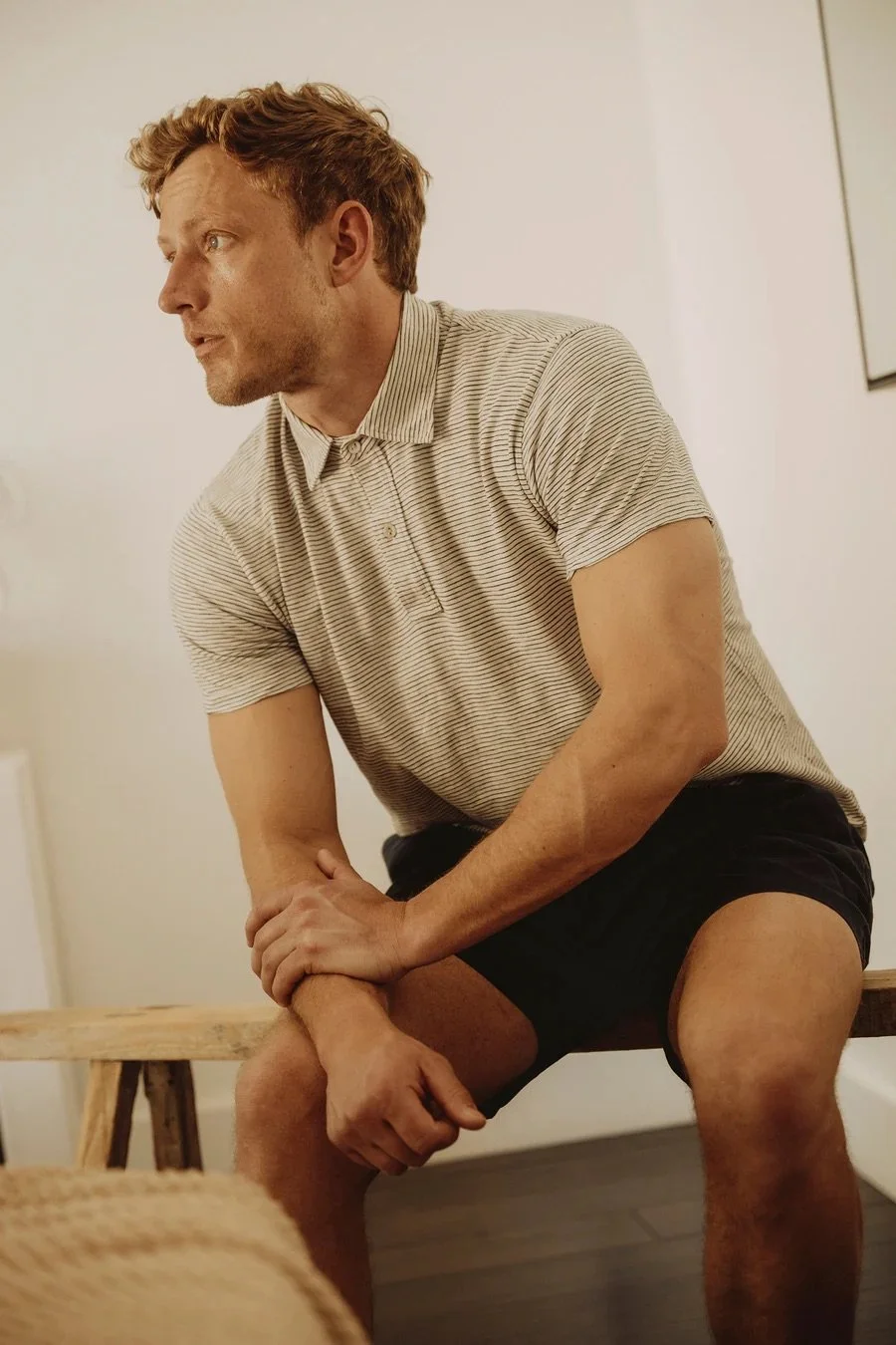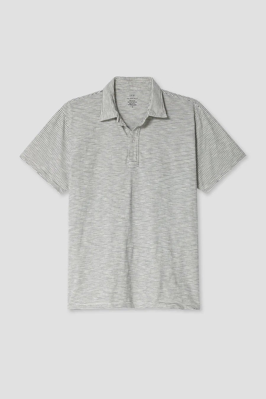 S.K.U. Refreshing mini stripe in our modern polo silhouette. Fits like a tee, now in stripes. 100% cotton slub garment dyed and pre-shrunk light weight and washed for a soft hand. Imported yarn of American grown cotton and recycled cotton/poly stripe A slub texture refers to irregularities or variations in the thickness of the yarn used to make the fabric. These irregularities create small, raised bumps or thicker areas in the fabric, giving it a slightly uneven or textured appearance. Slub yarns are spun with deliberate inconsistencies, resulting in a fabric with a unique visual and tactile texture.