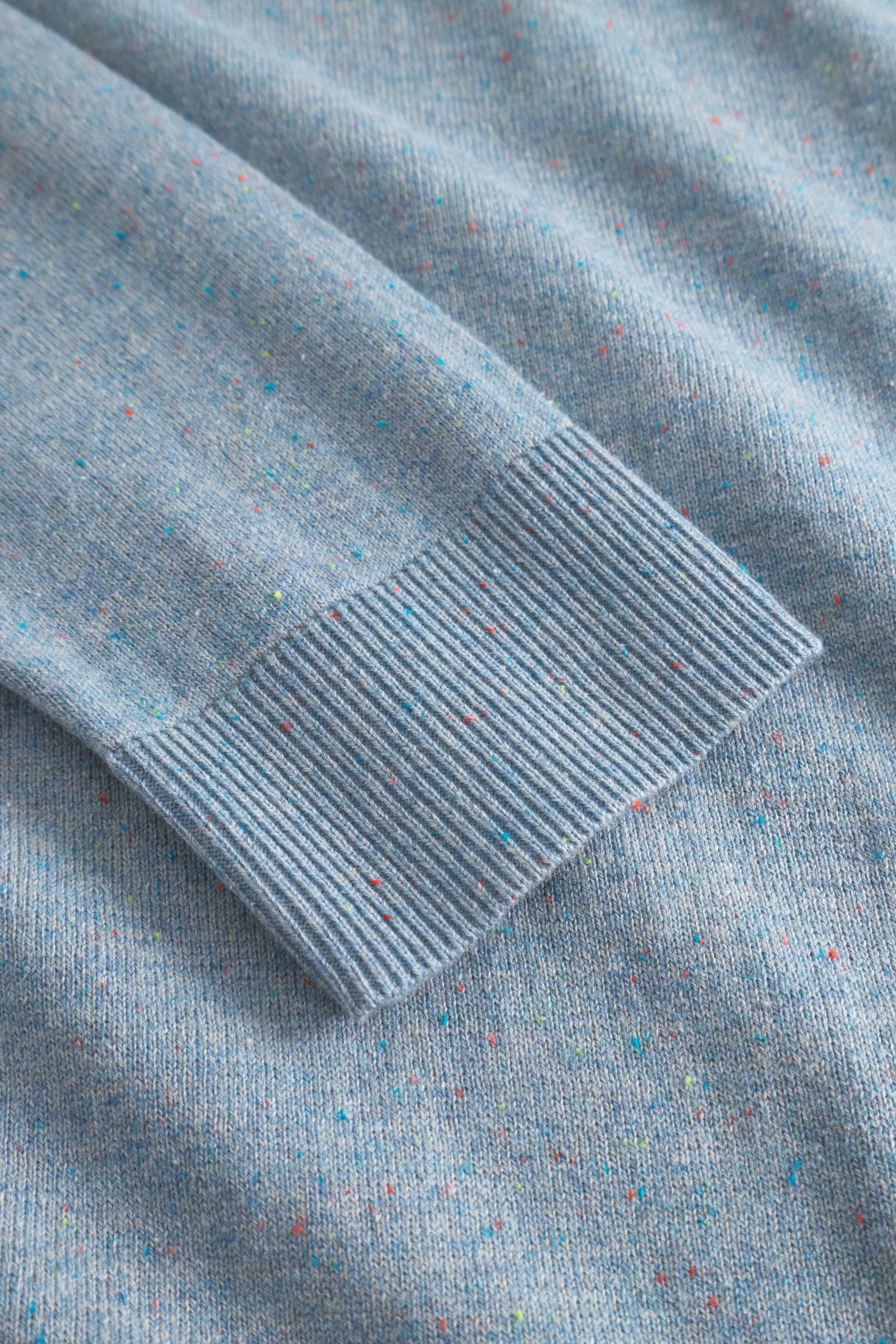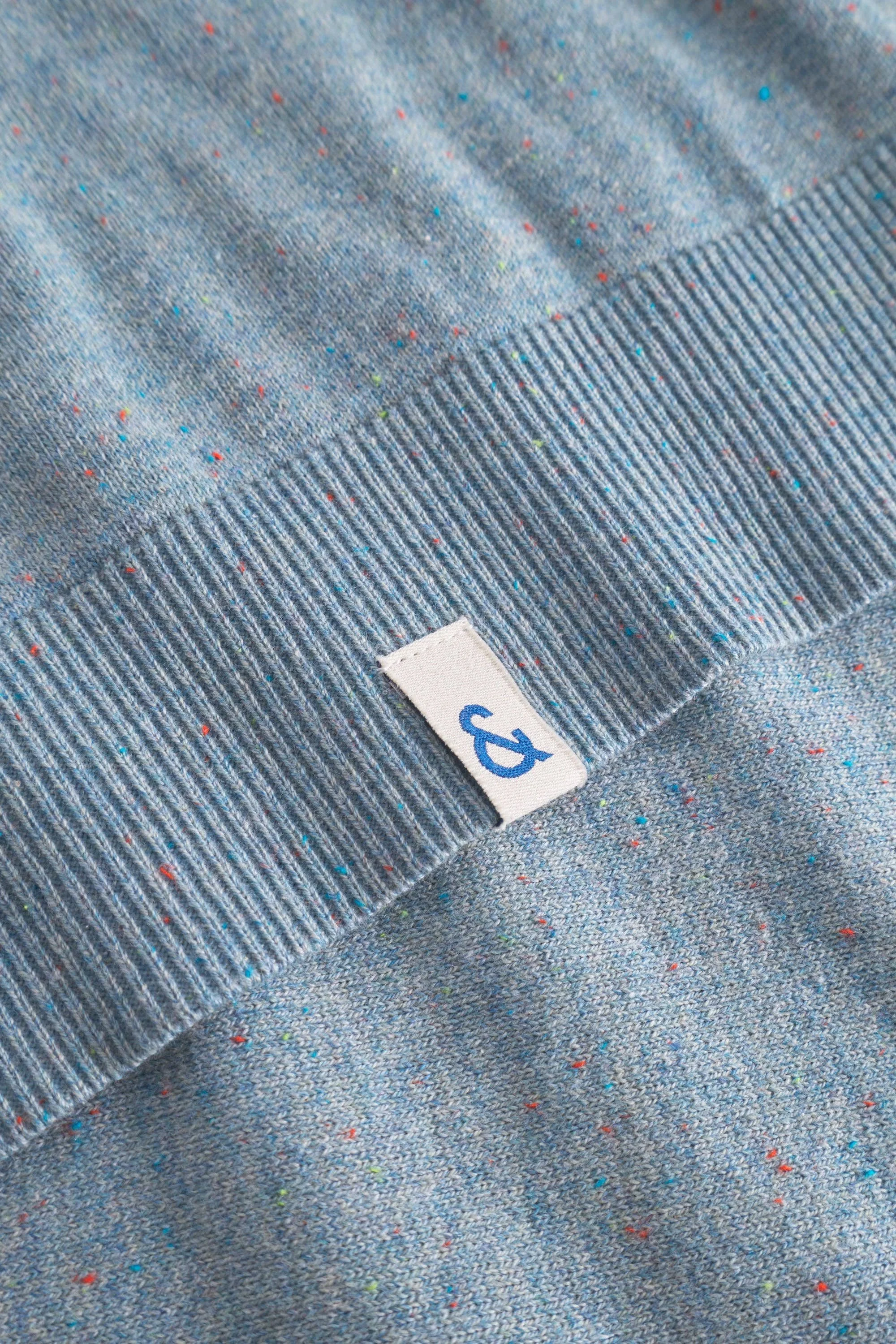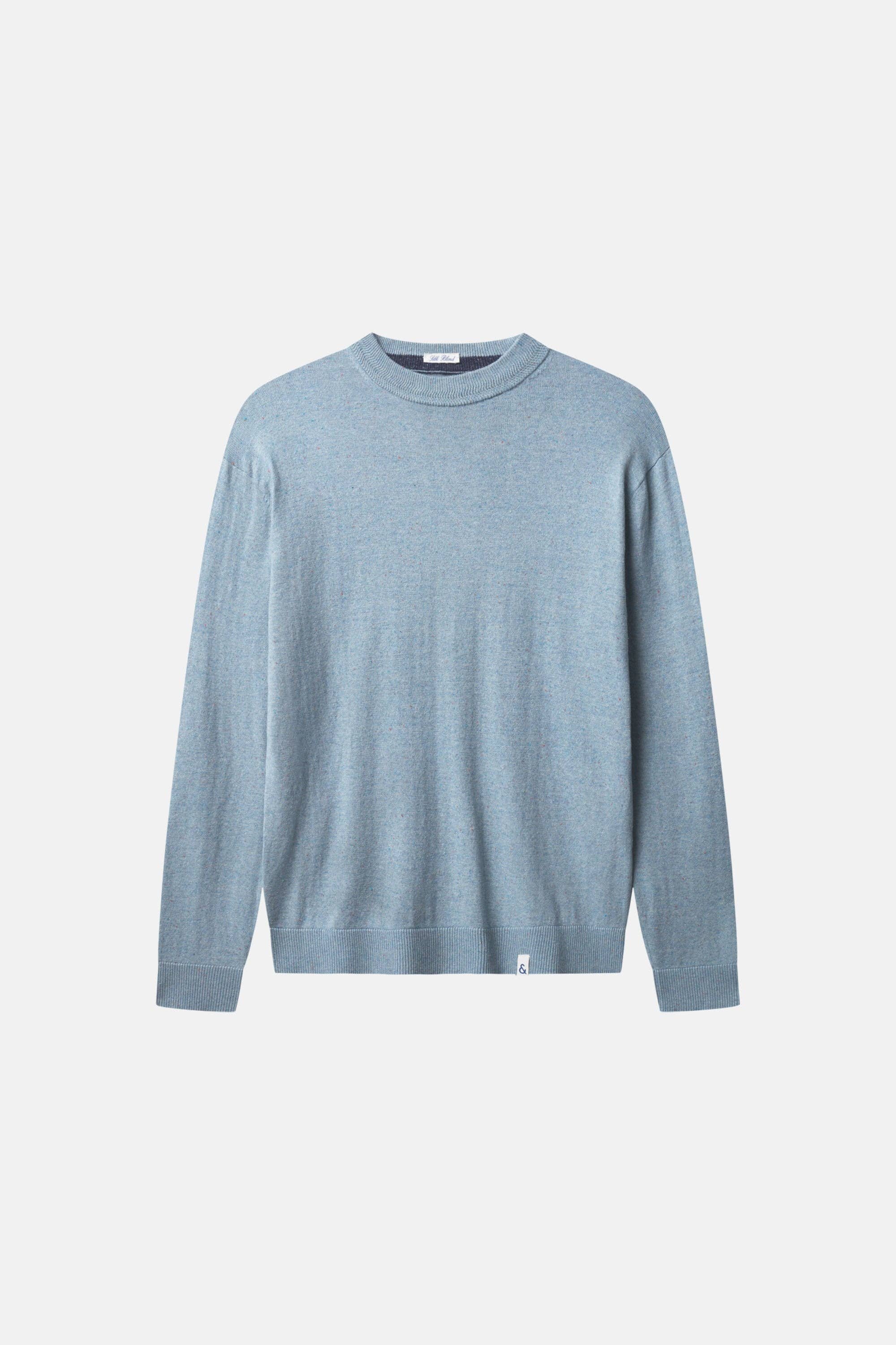 Lightweight basic sweater for men made from a cotton-silk blend. Zigzag pattern on collar, cuffs on sleeves and hem, contrasting color on the inside, logo on the hem.