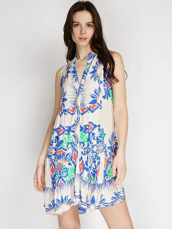 All Items › Sleeveless Printed Short Dress Royal Image 1 of 1 Sleeveless Printed Short Dress Royal $69.00 Limited Availability Made in Italy Get notified by email when this product is in stock. Add To Cart Added! Made in Italy