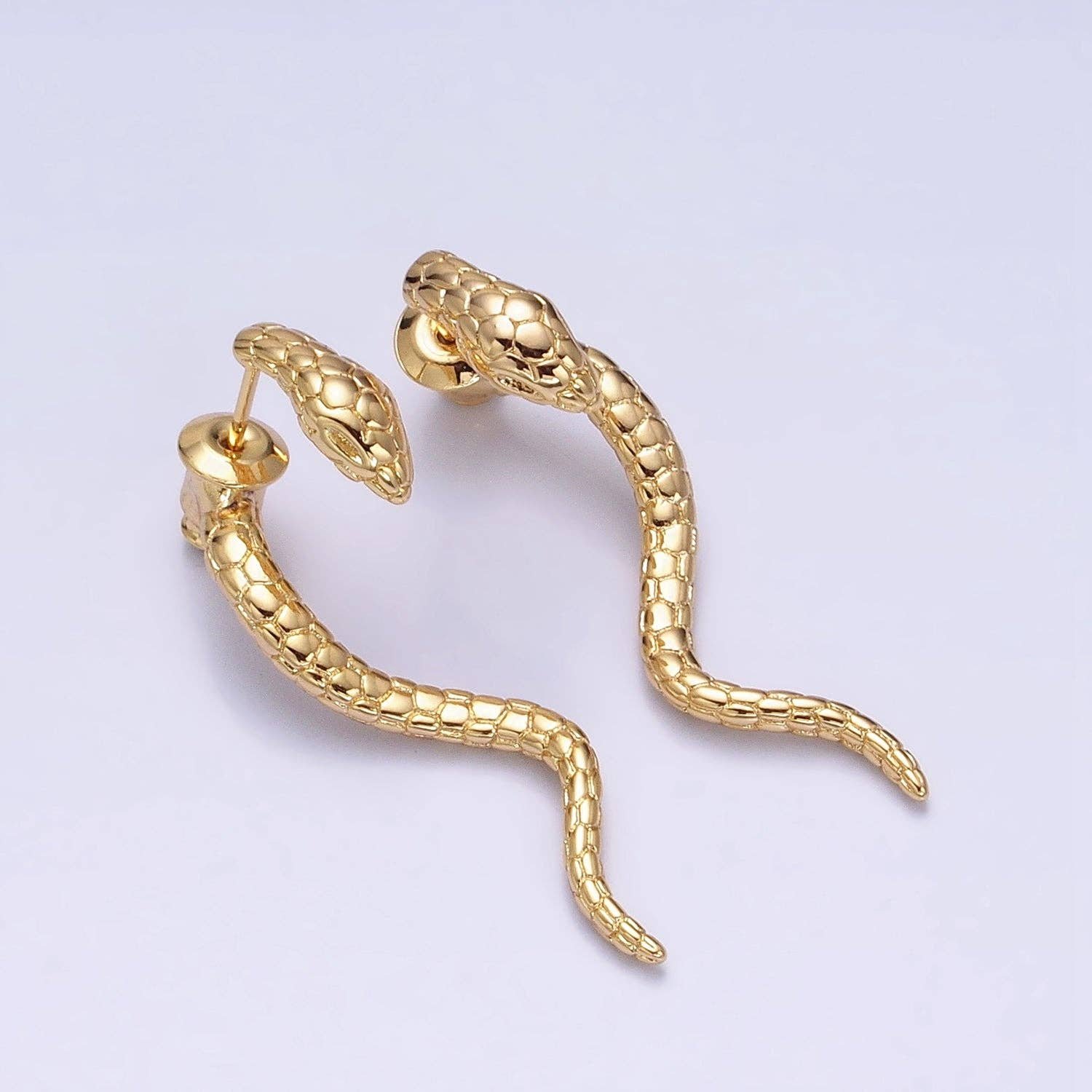 All Items › Snake Serpent Earrings: Silver Image 1 of 5 Image 2 of 5 Image 3 of 5 Image 4 of 5 Image 5 of 5 Snake Serpent Earrings: Silver $62.00 Limited Availability Description: - Material: Brass, 16K Gold-Filled, White Gold-Filled - Size: 11.2mm x 4.6mm - Quantity: 1 pair - Color: Gold, Silver - Lead Free, Nickel Free Get notified by email when this product is in stock. Add To Cart Added! Description: - Material: Brass, 16K Gold-Filled, White Gold-Filled - Size: 11.2mm x 4.6mm - Quantity: 1 pair - Color: Gold, Silver - Lead Free, Nickel Free