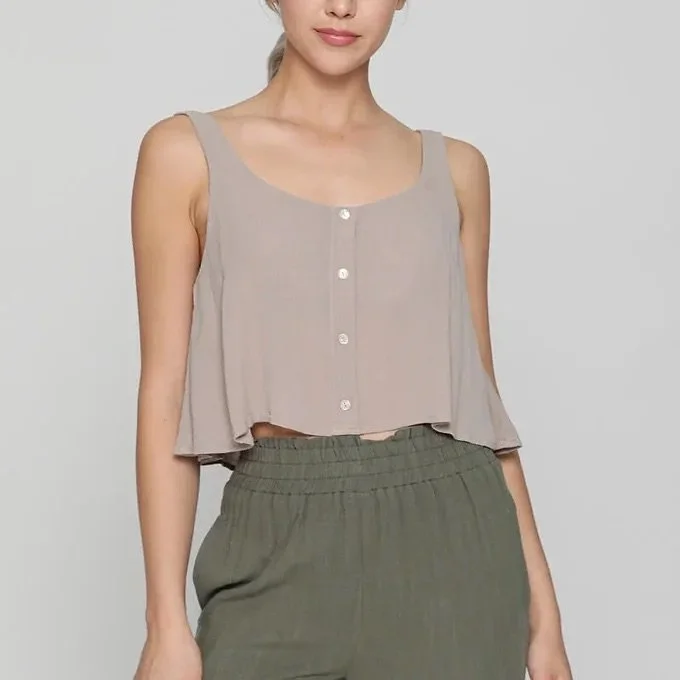 All Items › SOLID GAUZE FRONT BUTTON DOWN CROPPED TANK TOP KHAKI Image 1 of 1 SOLID GAUZE FRONT BUTTON DOWN CROPPED TANK TOP KHAKI $39.00 sold out SOLID GAUZE FRONT BUTTON DOWN CROPPED TANK TOP KHAKI SOLID GAUZE FRONT BUTTON DOWN CROPPED TANK TOP KHAKI: Small Medium Large Get notified by email when this product is in stock. Sold Out Added! SOLID GAUZE FRONT BUTTON DOWN CROPPED TANK TOP KHAKI