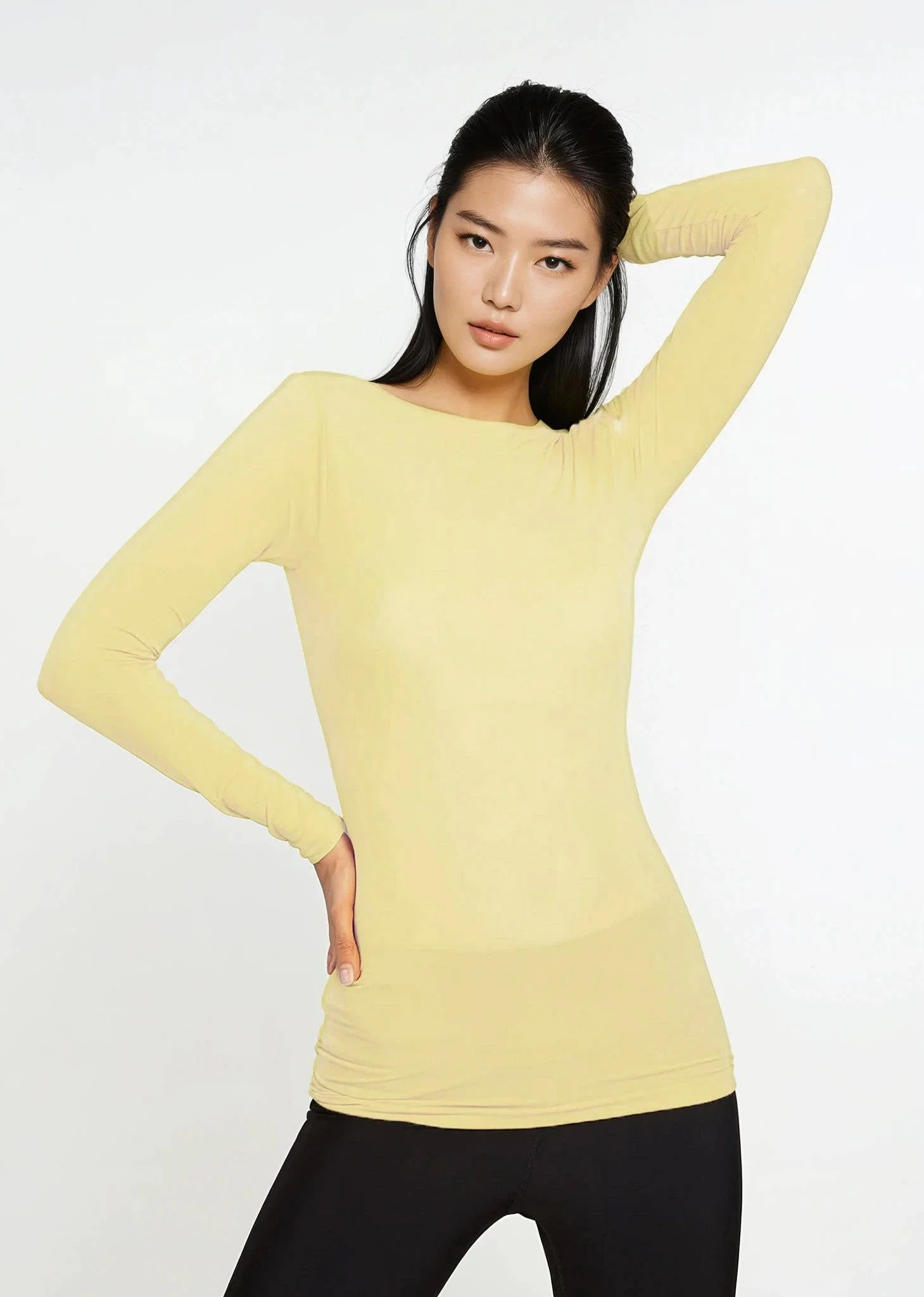 All Items › Solid Second Skin Top: Black Pearl Image 1 of 5 Image 2 of 5 Image 3 of 5 Image 4 of 5 Image 5 of 5 Solid Second Skin Top: Black Pearl $55.00 Ultra soft long sleeve semi sheer top by AMB Designs with higher unfinished neck. Essential layering top!One size fits 0-1292% Nylon 8% Spandex Get notified by email when this product is in stock. Quantity: Add To Cart Added! Ultra soft long sleeve semi sheer top by AMB Designs with higher unfinished neck. Essential layering top!One size fits 0-1292% Nylon 8% Spandex