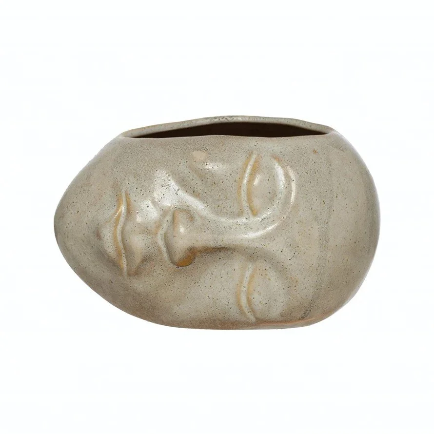 All Items › Stoneware Face Planter, Reactive Glaze Image 1 of 1 Stoneware Face Planter, Reactive Glaze $34.00 Limited Availability 6-3/4"L x 5-1/4"W x 4"H Stoneware Face Planter, Reactive Glaze, White (Each One Will Vary)Material: StonewareStyle: Neutrals Get notified by email when this product is in stock. Add To Cart Added! 6-3/4"L x 5-1/4"W x 4"H Stoneware Face Planter, Reactive Glaze, White (Each One Will Vary)Material: StonewareStyle: Neutrals