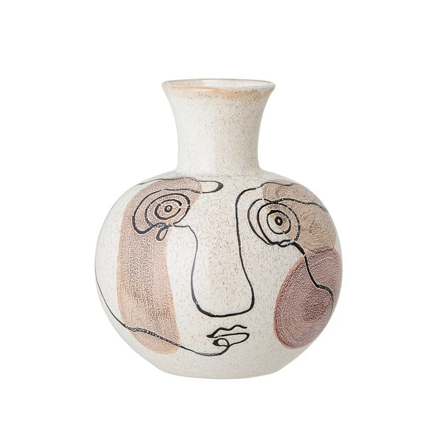 7-3/4" Round x 9"H Hand-Painted Stoneware Vase w/ Face, Multi Color Product Attributes: Watertight Style: Hand-Painted This unique vase is the perfect addition to any boho home. This beautiful hand-painted stoneware vase has a round shape, and a unique face on it. This vase looks great with either real or faux florals, and adds a pop of style to any type of neutral room.