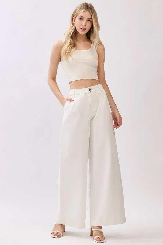 All Items › Stretch Wide Leg Pants Off White,L Image 1 of 5 Image 2 of 5 Image 3 of 5 Image 4 of 5 Image 5 of 5 Stretch Wide Leg Pants Off White,L $75.00 Limited Availability STRETCH TWILL PATCH POCKET WIDE LEG PANTS. 98% COTTON 2% SPANDEX Get notified by email when this product is in stock. Add To Cart Added! STRETCH TWILL PATCH POCKET WIDE LEG PANTS. 98% COTTON 2% SPANDEX
