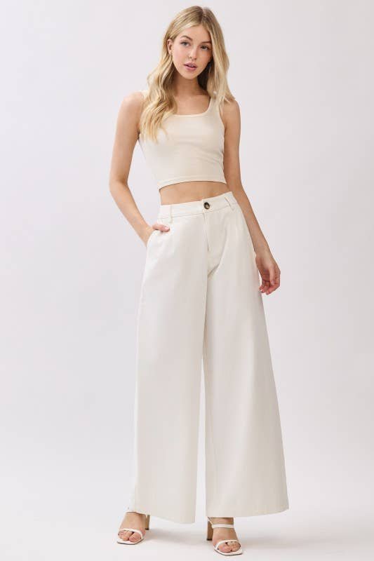 All Items › Stretch Wide Leg Pants Off White,M Image 1 of 5 Image 2 of 5 Image 3 of 5 Image 4 of 5 Image 5 of 5 Stretch Wide Leg Pants Off White,M $75.00 Limited Availability STRETCH TWILL PATCH POCKET WIDE LEG PANTS. 98% COTTON 2% SPANDEX Get notified by email when this product is in stock. Add To Cart Added! STRETCH TWILL PATCH POCKET WIDE LEG PANTS. 98% COTTON 2% SPANDEX