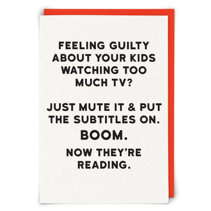 All Items › Subtitles Greeting Card Image 1 of 1 Subtitles Greeting Card $6.75 Razor sharp wit and humor at it's very best from the award winning collection - Holy Flaps!Size: 4.72 x 6.69inches.Neon Orange Envelope.Blank inside to add your own message. Get notified by email when this product is in stock. Quantity: Add To Cart Added! Razor sharp wit and humor at it's very best from the award winning collection - Holy Flaps!Size: 4.72 x 6.69inches.Neon Orange Envelope.Blank inside to add your own message.
