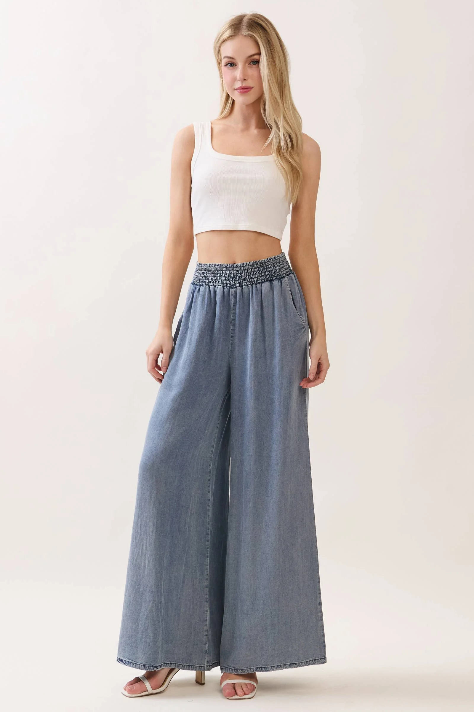 All Items › TENCEL WAIST WIDE LEG MED WASH,M Image 1 of 5 Image 2 of 5 Image 3 of 5 Image 4 of 5 Image 5 of 5 TENCEL WAIST WIDE LEG MED WASH,M $72.00 Limited Availability TENCEL WAIST SMOCKING BAND WIDE LEG PANTSMODEL IS WEARING SIZE SMALL100% TENCEL Get notified by email when this product is in stock. Quantity: Add To Cart Added! TENCEL WAIST SMOCKING BAND WIDE LEG PANTSMODEL IS WEARING SIZE SMALL100% TENCEL