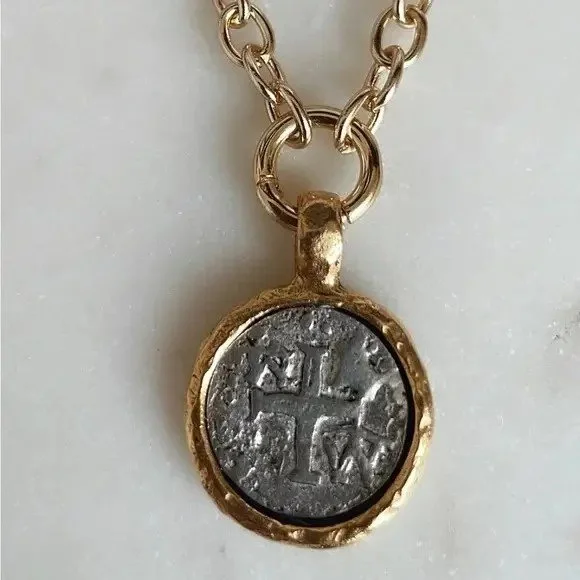 All Items › Villandry Necklace Image 1 of 1 Villandry Necklace $88.00 sold out Beautiful 18k gold filled chain necklace featuring a double side vintage coinMaterial : Pewter (lead free)Dimension : 25mm x 22mmSurface : Antique Gold, Antique SilverMeasures 16.5” longTramps+Thieves DesignMade in Los Angeles Get notified by email when this product is in stock. Sold Out Added! Beautiful 18k gold filled chain necklace featuring a double side vintage coinMaterial : Pewter (lead free)Dimension : 25mm x 22mmSurface : Antique Gold, Antique SilverMeasures 16.5” longTramps+Thieves DesignMade in Los Angeles