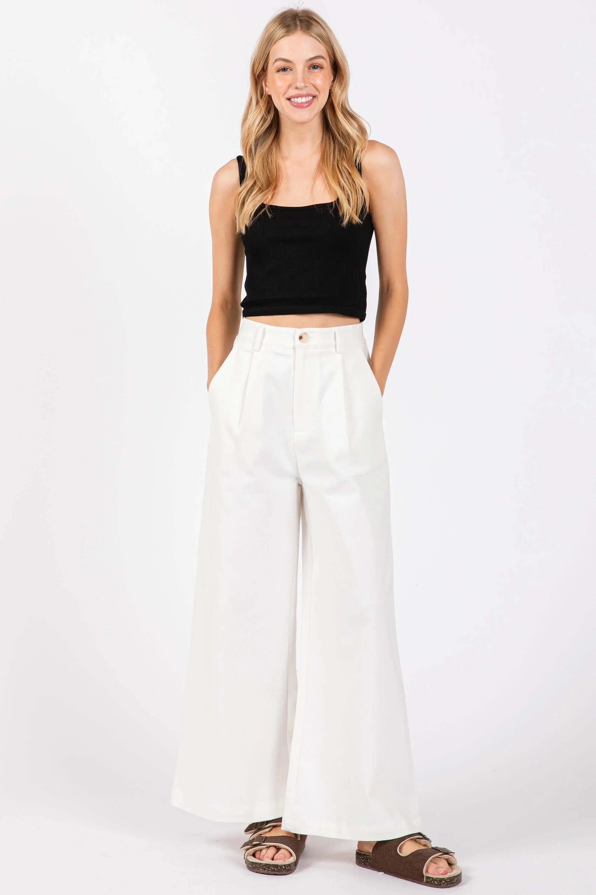 All Items › WIDE LEG TROUSER WITH WAIST BAND DETAIL-White Image 1 of 1 WIDE LEG TROUSER WITH WAIST BAND DETAIL-White $69.00 sold out WIDE-LEG TROUSER WITH WAISTBAND DETAIL97% COTTON 3% SPANAPPROX. LENGTH: 25” WIDE LEG TROUSER WITH WAIST BAND DETAIL white: Small Medium Large Get notified by email when this product is in stock. Sold Out Added! WIDE-LEG TROUSER WITH WAISTBAND DETAIL97% COTTON 3% SPANAPPROX. LENGTH: 25”