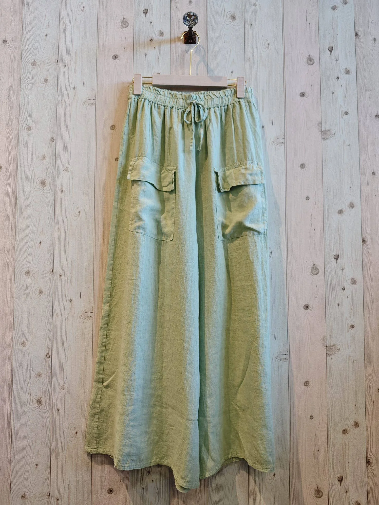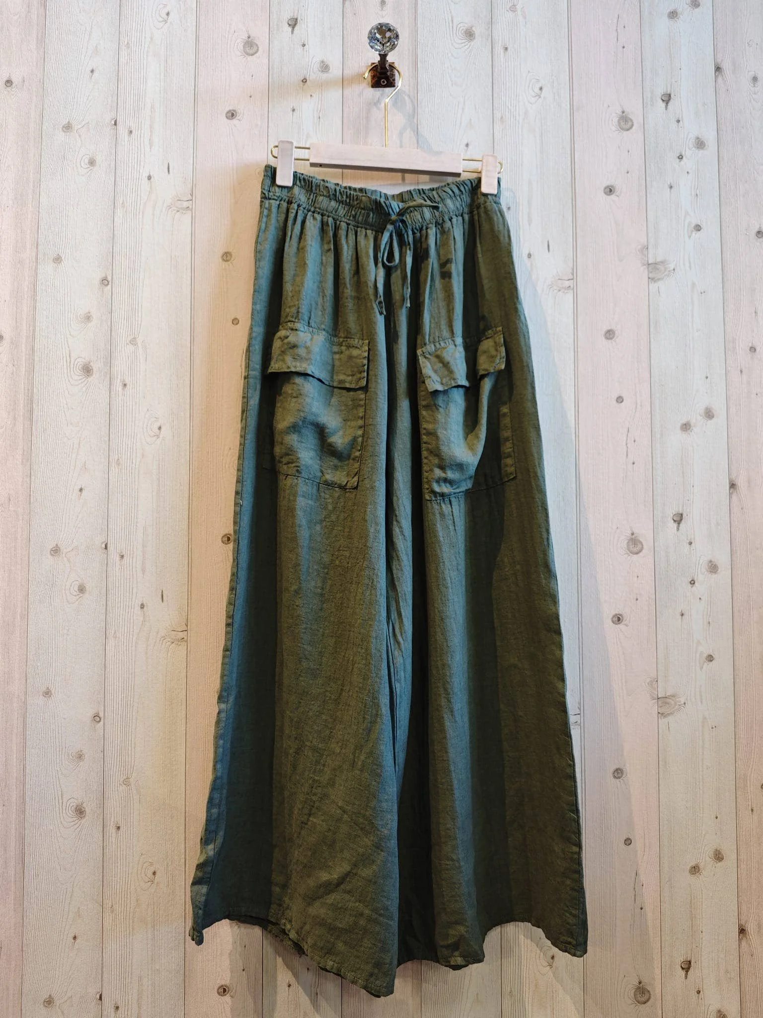 All Items › WIDE-LEG TROUSERS TWO POCKETS 100% LINEN: GREEN WATER Image 1 of 5 Image 2 of 5 Image 3 of 5 Image 4 of 5 Image 5 of 5 WIDE-LEG TROUSERS TWO POCKETS 100% LINEN: GREEN WATER $78.00 sold out WIDE-LEG TROUSERS WITH TWO POCKETS *COMPOSITION 100% LINEN *MEASUREMENTS LENGTH 100 CM AND WIDTH 40 CM. APPROX Get notified by email when this product is in stock. Sold Out Added! WIDE-LEG TROUSERS WITH TWO POCKETS *COMPOSITION 100% LINEN *MEASUREMENTS LENGTH 100 CM AND WIDTH 40 CM. APPROX