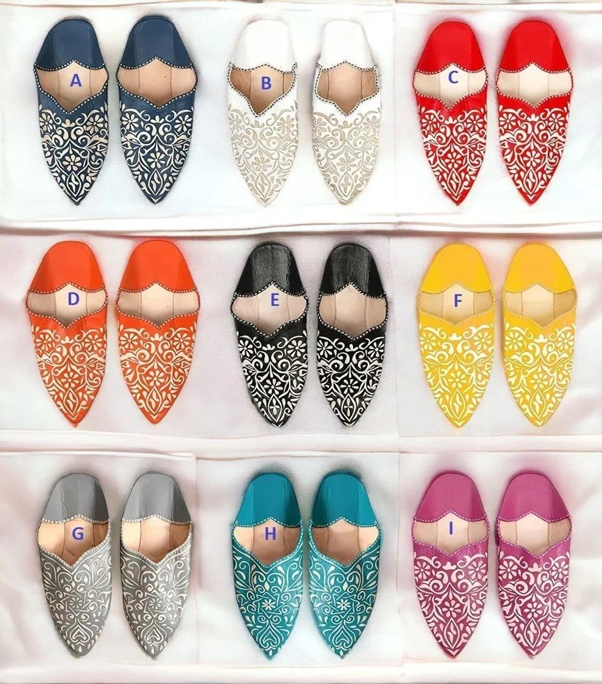 In Morocco slippers are called 'babouches', which are made of 100% moroccan leather at the bottom. We've used suede to give it that winter look. Moroccans love wearing their babouches everywhere in the house. These babouches are traditional in style and are more decorative.