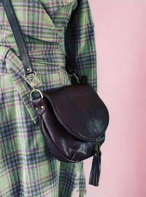 brown leather messenger bag. Condition is good with a great patina, slouchy soft brown leather with two large zip pockets on the front plus a further pocket on the reverse. Inside lined in beige branded lining with a small phone pouch and a secure zip pocket. Long adjustable length cross body shoulder strap.