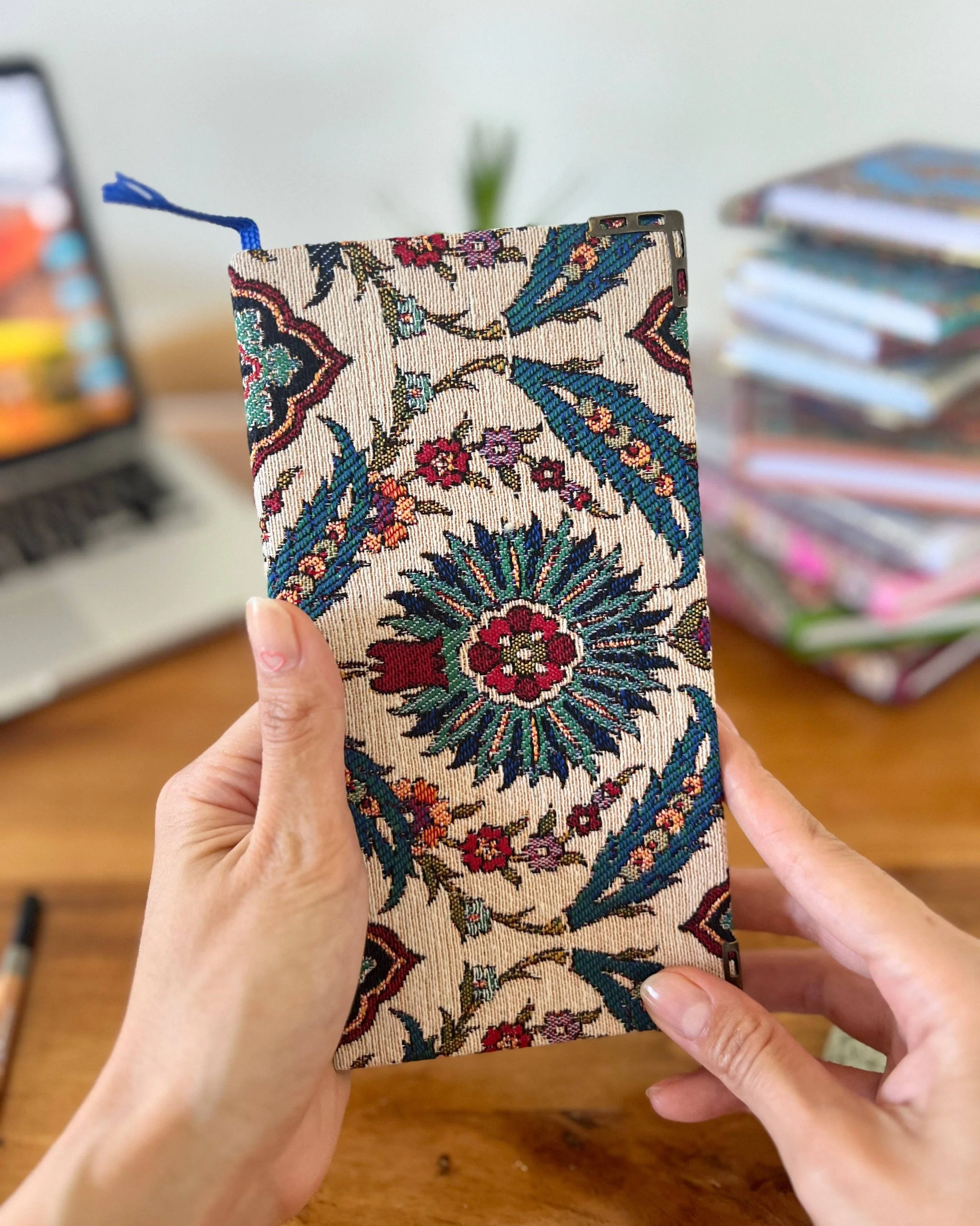 These notebooks are made from woven fabric and unlined 100 pages. They are great for notetaking, writing diaries. These notebooks have a soft and luxurious touch. Their fabric covers make them very unique and distinguished.