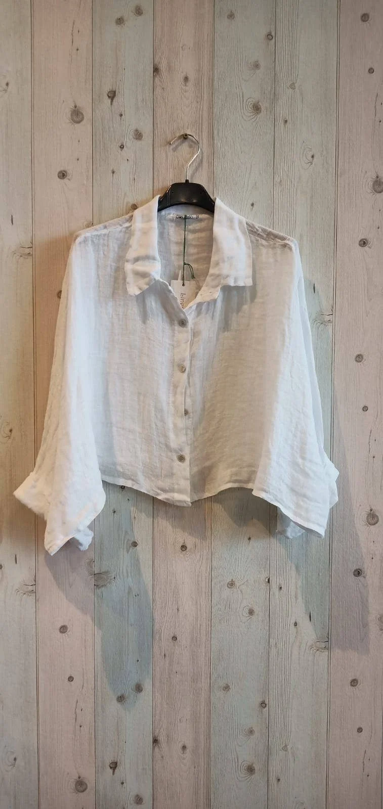 SLEEVELESS LINEN CROPPED BLOUSE: BLACK