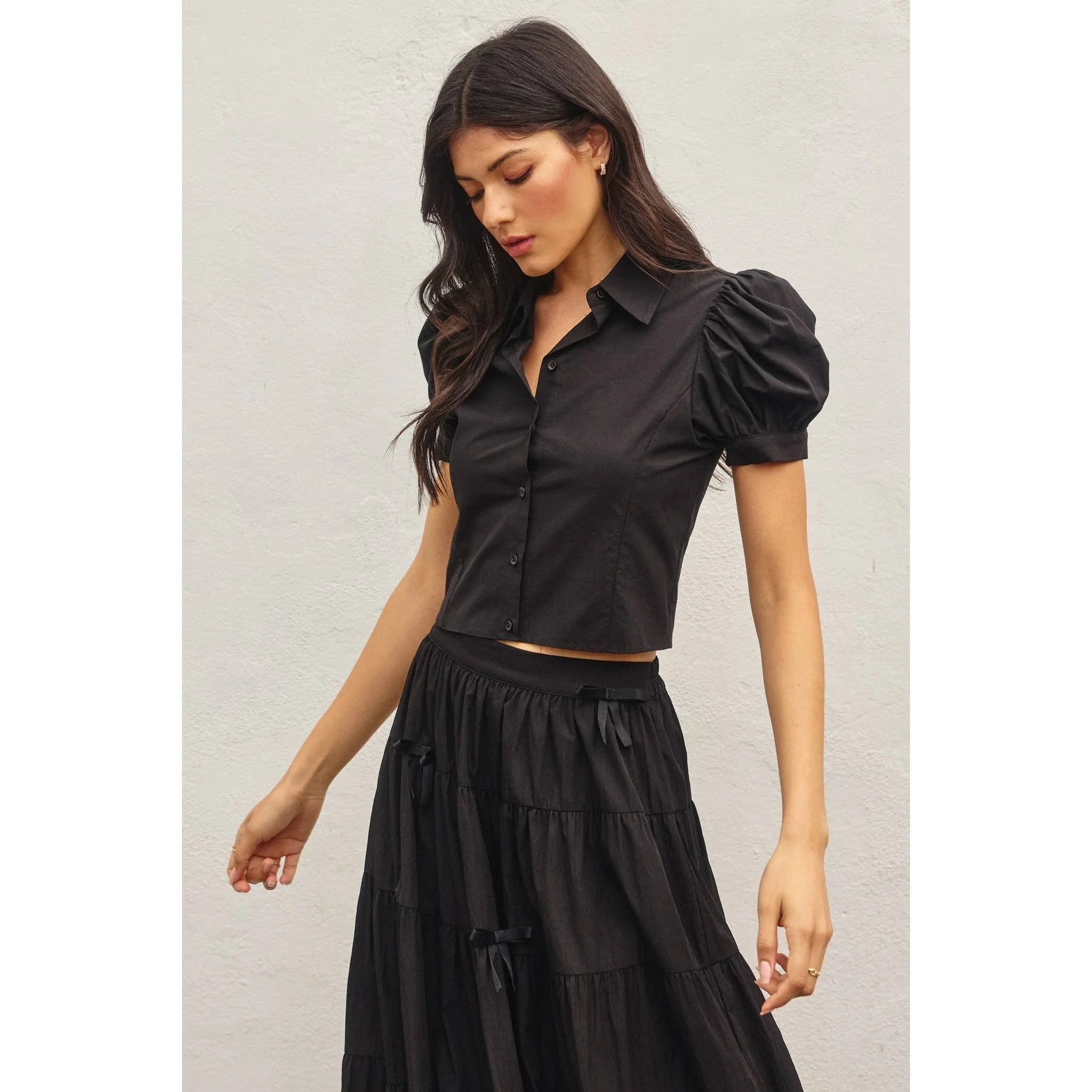Like a Queen Puff-Sleeve V-Neck Blouse Seagrass