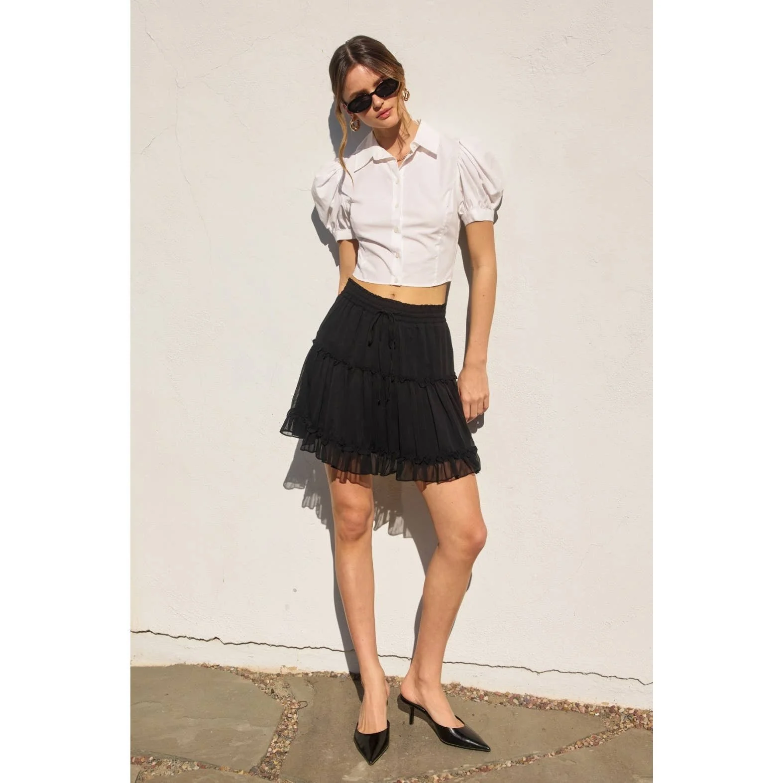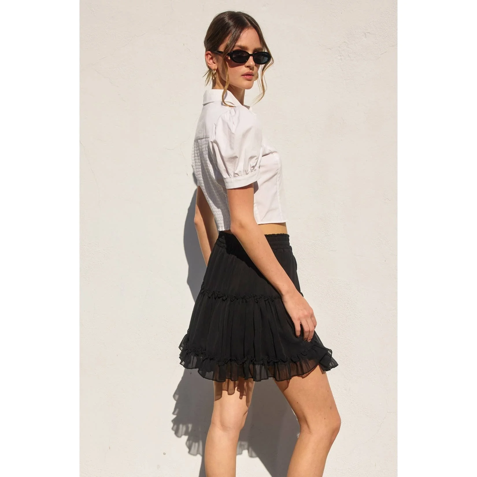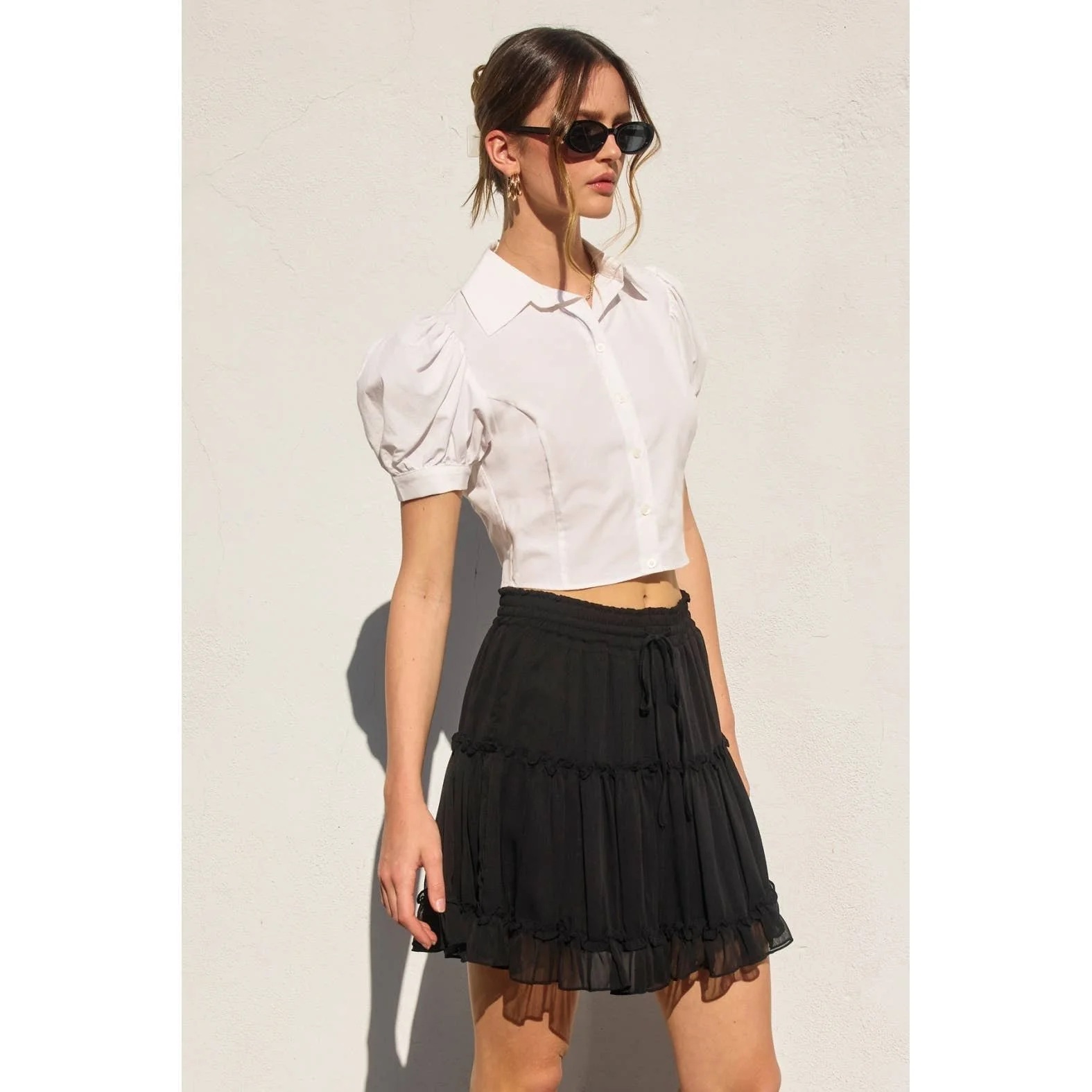 SIDE SHIRRING DETAILED CROP SHORT SLEEVE TOP